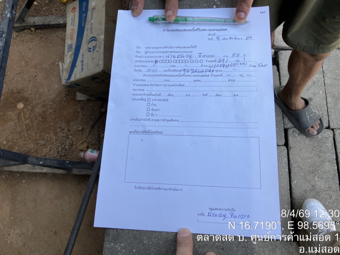 เจ้าหน้าที่กองยุทธศาสตร์และงบประมาณ ดำเนินการตามคำร้องขอซ่อมแซมเคเบิ้ลทีวี ชุมชนดอนไชย