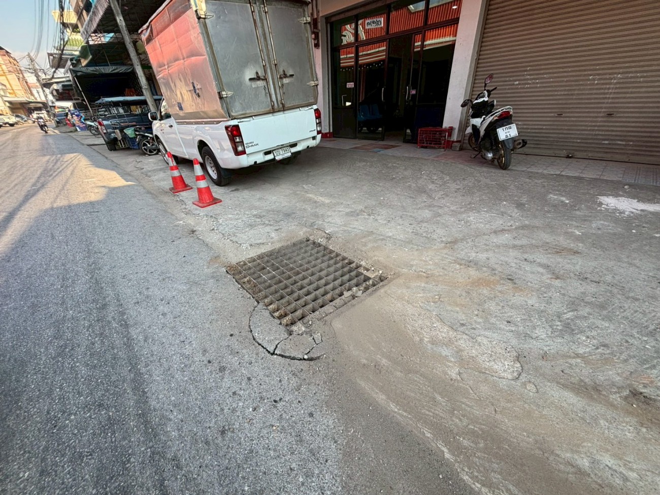 1. ได้ดำเนินการเปลี่ยนฝาท่อระบายน้ำ บริเวณฝั่งตรงข้ามตลาดหมวยแขก