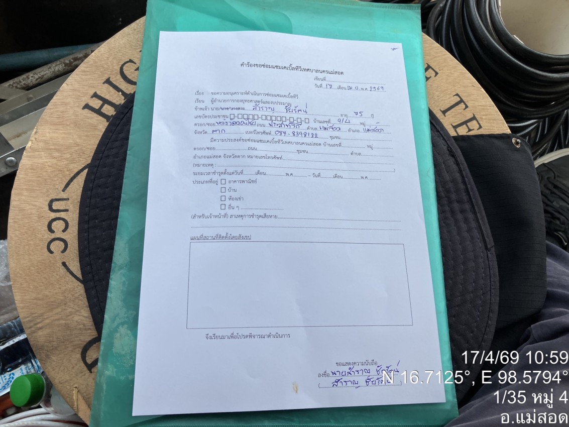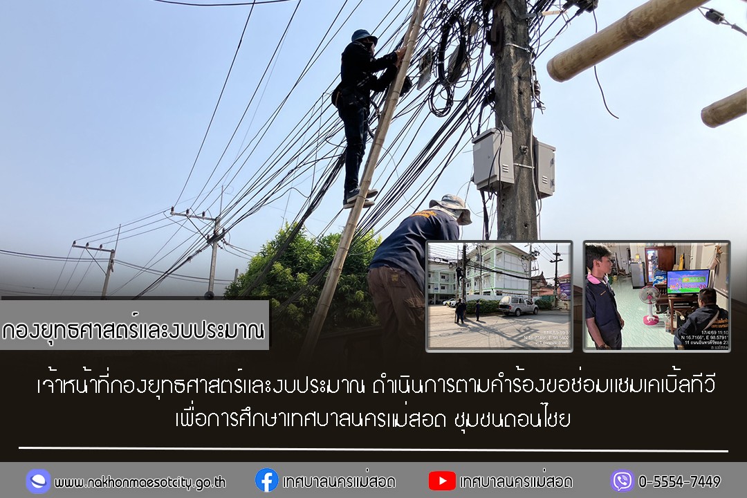 เจ้าหน้าที่กองยุทธศาสตร์และงบประมาณ ดำเนินการตามคำร้องขอซ่อมแซมเคเบิ้ลทีวี ชุมชนดอนไชย