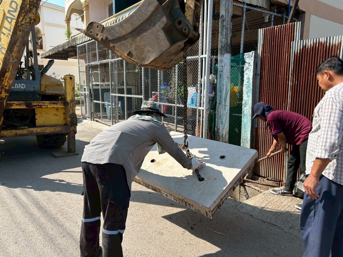 1. ได้ดำเนินการเปลี่ยนฝาท่อระบายน้ำ บริเวณซอยข้างโรงเรียนราษฎร์วิทยา