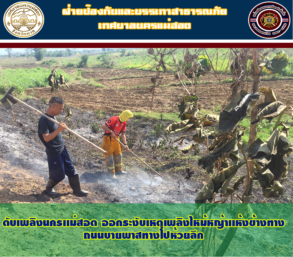 วันที่ 20 เมษายน 2564 เวลา 15.00 น.พนักงานเข้าเวรรับ-ส่ง วิทยุสื่อสารและโทรศัพท์ ได้รับแจ้งมีเหตุเพลิงไหม้หญ้าเเห้ง บริเวณถนนบาสพาสทางไปห้วยลึก ตำบลเเม่ปะ อำเภอแม่สอด จังหวัดตาก รับแจ้งแล้ว จึงได้รายงานให้ผู้บังคับบัญชาทราบและได้นำรถยนต์บรรทุกน้ำดับเพลิง ออกทำการดับเพลิง พื้นที่ดังกล่าว เมื่อไปถึงที่เกิดเหตุพบว่าเพลิงกำลังลุกไหม้หญ้าเเห้งเเละเริ่มติดต่อลุกลาม พนักงานดับเพลิงจึงทำการฉีดระงับเหตุเพลิงไหม้ พร้อมใช้ไม้ตบไฟ จนสามารถควบคุมเพลิงไว้ได้ เเละทำการเฝ้าระวัง