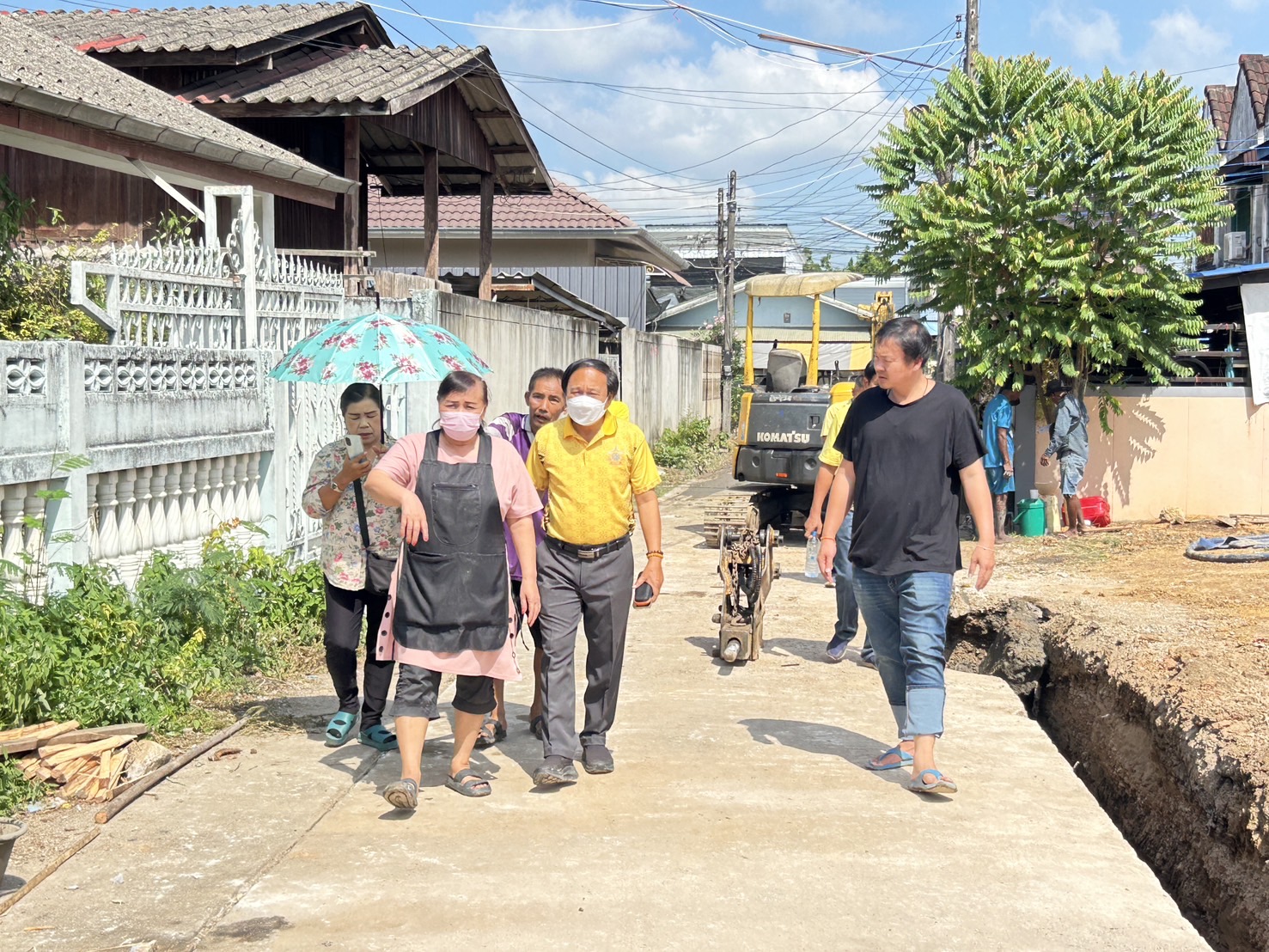 ว่าที่ร้อยตรี ประเสริฐ ปวงละคร นายกเทศมนตรีนครแม่สอด พร้อมด้วย คณะผู้บริหาร สมาชิกสภาเทศบาล และเจ้าหน้าที่ที่เกี่ยวข้องลงพื้นที่ติดตามความคืบหน้าโครงการก่อสร้างถนนคอนกรีตเสริมเหล็ก พร้อมวางท่อระบายน้ำและการก่อสร้างรางระบายน้ำ ชุมชนจ๊อกจอสามัคคีและชุมชนมณีไพรสณฑ์