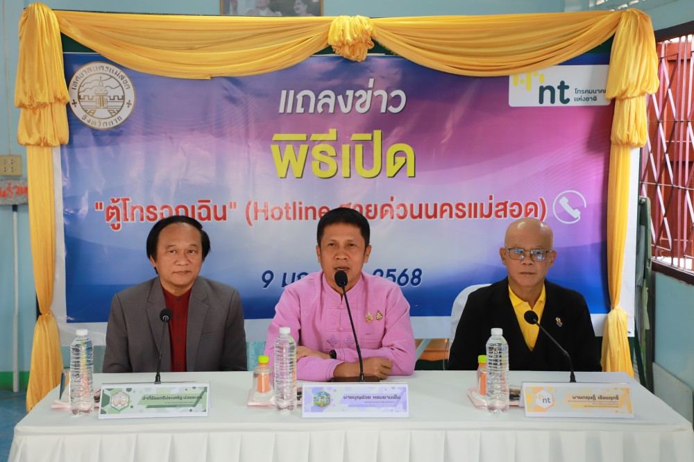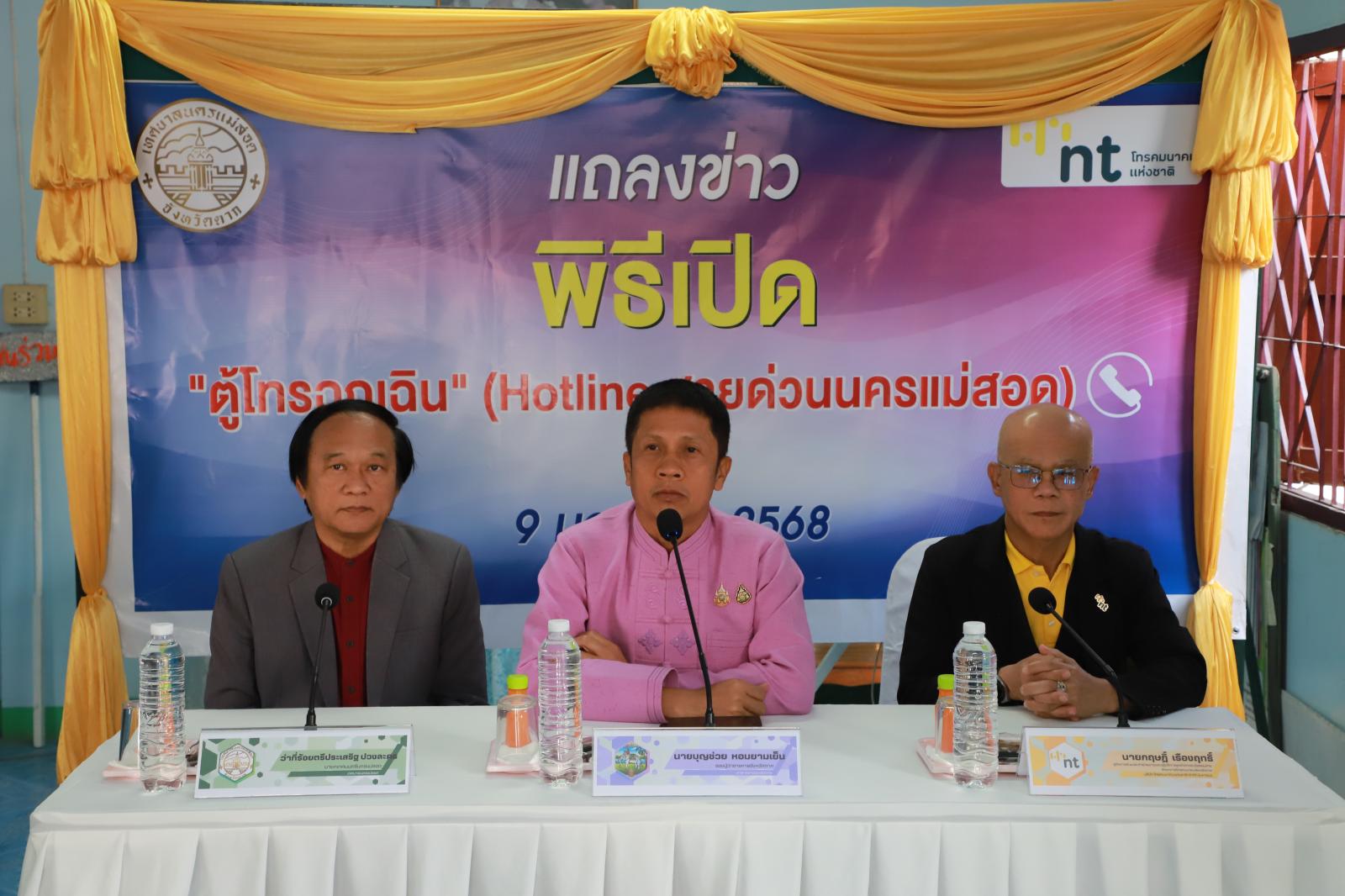 ว่าที่ร้อยตรี ประเสริฐ ปวงละคร นายกเทศมนตรีนครแม่สอด พร้อมด้วย คณะผู้บริหาร สมาชิกสภาเทศบาล รองปลัดเทศบาล รักษาราชการแทน ปลัดเทศบาลนครแม่สอด หัวหน้าส่วนราชการ และเจ้าหน้าที่ที่เกี่ยวข้อง เข้าร่วมการจัดแถลงข่าวและพิธีเปิด “ตู้โทรฉุกเฉิน” Hotline สายด่วนนครแม่สอด โดยมี นายบุญช่วย หอมยามเย็น รองผู้ว่าราชการจังหวัดตาก เป็นประธานในพิธีฯ พร้อมด้วย นายกฤษฎิ์ เรืองฤทธิ์ ผู้จัดการส่วนประจำฝ่ายขายและปฏิบัติการลูกค้าภาคเหนือตอนล่าง รักษาการโทรคมนาคมจังหวัดตาก โดยมีวัตถุประสงค์เพื่อให้ประชาชนในเขตเทศบาลนครแม่สอดสามารถแจ้งเหตุฉุกเฉินได้โดยไม่เสียค่าใช้จ่าย