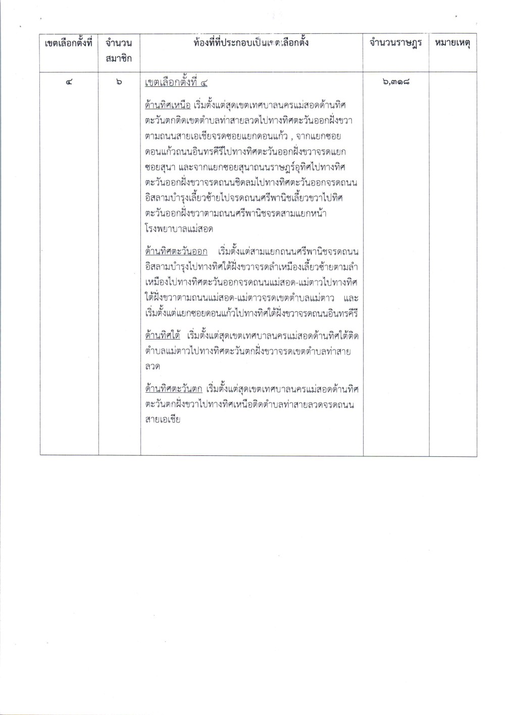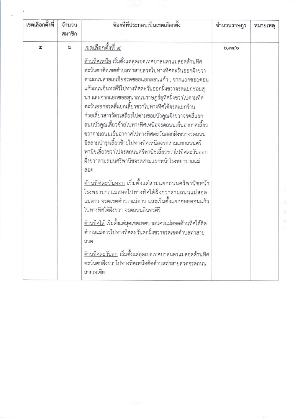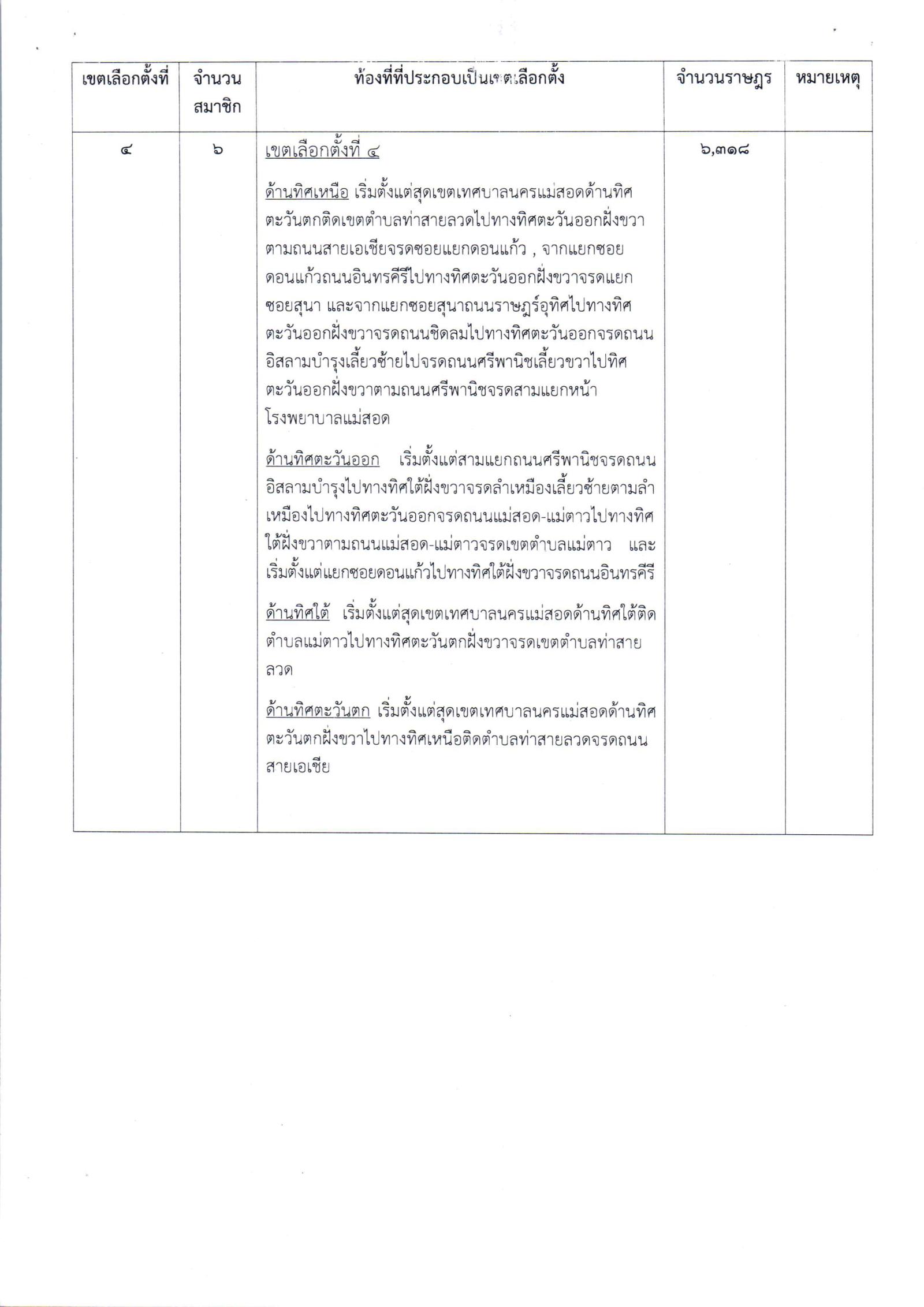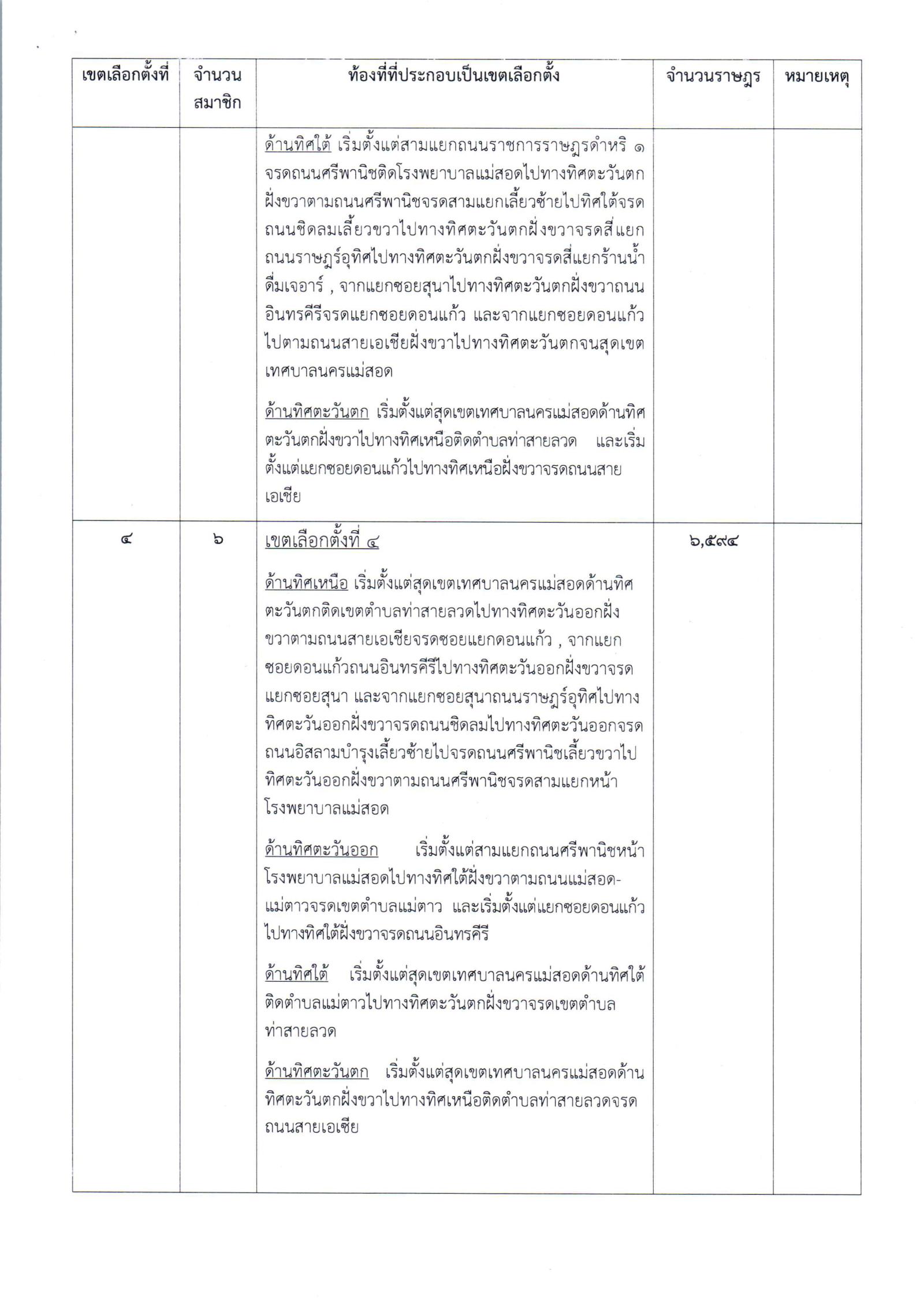ประกาศสำนักงานคณะกรรมการการเลือกตั้งประจำจังหวัดตาก เรื่อง รูปแบบการเเบ่งเขตเลือกตั้งสมาชิกสภาเทศบาลนครแม่สอด อำเภอแม่สอด จังหวัดตาก เพื่อรับฟังความคิดเห็นและข้อเสนอเเนะจากประชาชนในเขตเลือกตั้ง