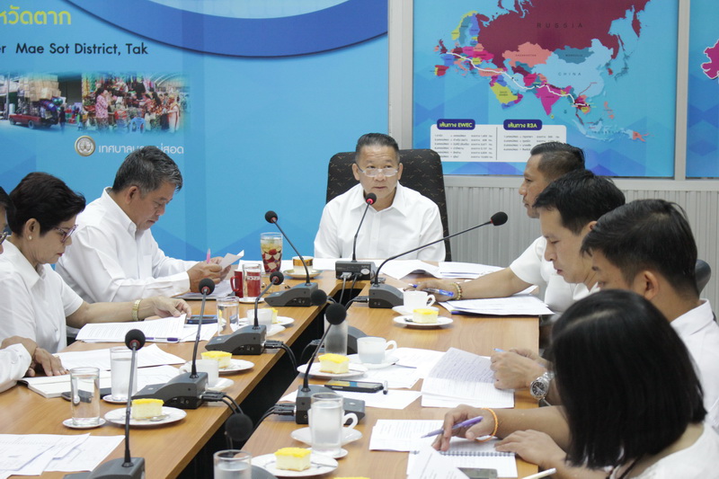 ที่ห้องประชุม aec ชั้น 2 สำนักงานเทศบาลนครแม่สอด ดร.เทอดเกียรติชินสรนันท์นายกเทศมนตรีนครแม่สอดเป็นประธานการประชุมคณะผู้บริหารสมาชิกสภาเทศบาลหัวหน้าส่วนราชการเทศบาลนครแม่สอด โดยมีที่ปรึกษานายกเทศมนตรี รองนายกเทศมนตรี สมาชิกสภาเทศบาล ปลัด รองปลัดผู้ อำนวยการกอง ผู้บริหารสถานศึกษาโรงพยาบาลสังกัดเทศบาลนครแม่สอดและเจ้าหน้าที่ที่เกี่ยวข้องเข้าร่วมการประชุมโดยพร้อมเพรียง โดยมีวาระการประชุมประกอบด้วยนโยบายของผู้บริหารและสมาชิกสภาเทศบาลนครแม่สอดปี 2560-2562 การจัดการระบบการจ้างคนต่างด้าวสัญชาติเมียนมาร์ที่เข้ามาทำงานในลักษณะไปกลับหรือตามฤดูกาลตามมาตรา 14 แห่งพระราชบัญญัติการทำงานของคนต่างด้าวปี 2551 ผลการประชุม vdo conference ของกระทรวงมหาดไทยเมื่อวันที่ 9 ตุลาคม 2559 ที่ห้องประชุมที่ว่าการอำเภอแม่สอด ผลการประชุมกับผู้ว่าราชการจังหวัดตาก และ ผู้นำองค์กรปกครองส่วนท้องถิ่น เมื่อวันอังคารที่ 11 ตุลาคม 2559 ที่ห้องทำงานในอำเภอแม่สอด ข้อหารือระหว่างผู้ว่าราชการจังหวัดตากที่เข้าพบผู้ว่าราชการจังหวัดเมียวดี และแนวทางการจัดทำแผนพัฒนาการศึกษาขององค์กรปกครองส่วนท้องถิ่น เรื่องการรับรองรายงานการประชุมครั้งที่ผ่านมาและเรื่องติดตามความคืบหน้างานที่มอบหมาย ประกอบด้วยการสำรวจจำนวนประชากรภายในเขตเทศบาลนครแม่สอดการจัดเก็บขยะในเขตเทศบาลนครแม่สอด เรื่องการจัดตั้งโรงเรียนกีฬา การแข่งขันกีฬาปั่นจักรยานเฉลิมพระเกียรติพระบาทสมเด็จพระเจ้าอยู่หัวและสมเด็จพระนางเจ้าพระบรมราชินีนาถ โครงการก่อสร้างสนามกีฬาอำเภอแม่สอดจังหวัดตากโครงการปีงบประมาณ 2558 ถึง 2560 ในส่วนของการประมูลจัดซื้อจัดจ้าง การปรับปรุงระบบไฟฟ้าสนามกีฬาสมเด็จพระนเรศวรมหาราช การจัดตั้งโรงเรียนผู้สูงอายุ การเปิดนครแม่สอดไนท์บาซาร์ การรายงานผลการประชาคมรับฟังความคิดเห็นของประชาชนในเขตเทศบาลนครแม่สอด การเข้ารับการคัดเลือกรางวัลองค์กรปกครองส่วนท้องถิ่นดีเด่นด้านการป้องกันการทุจริตของปปชและประเด็นข้อหารือผู้ว่าราชการจังหวัดตาก
