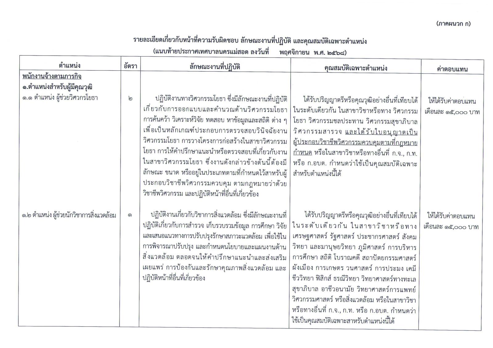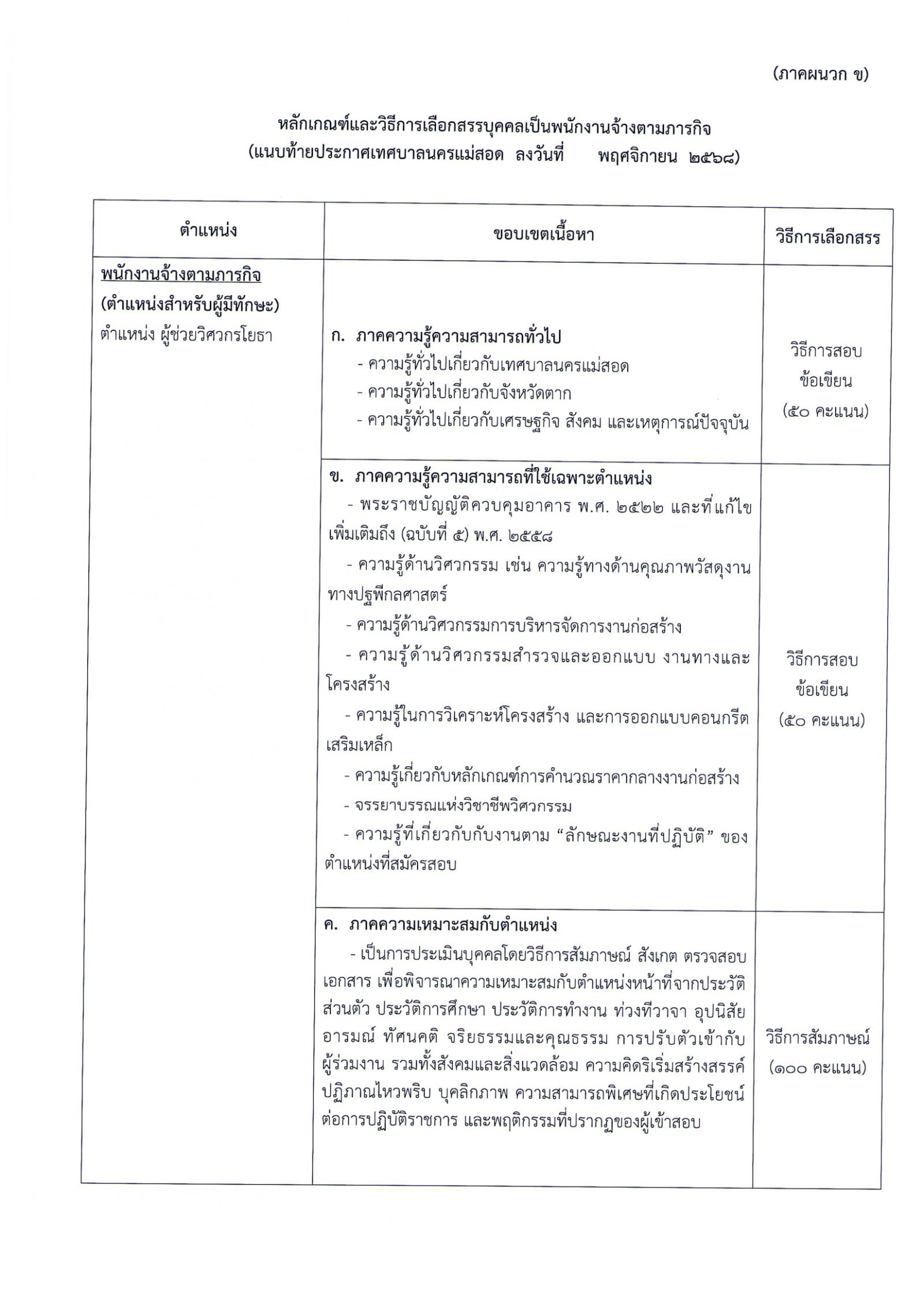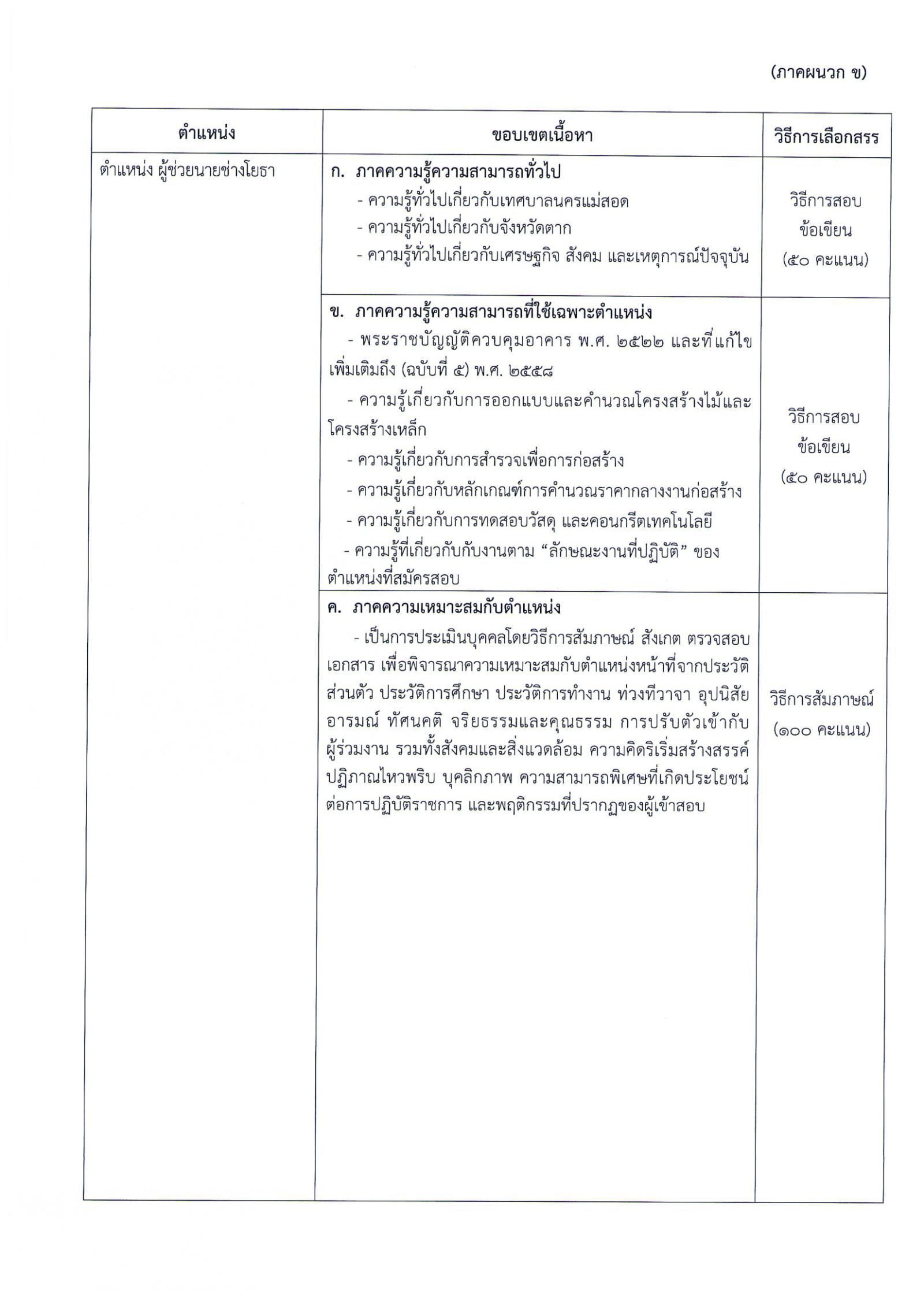 1.1.1 ตำแหน่ง ผู้ช่วยวิศวกรโยธา จำนวน 2 อัตรา