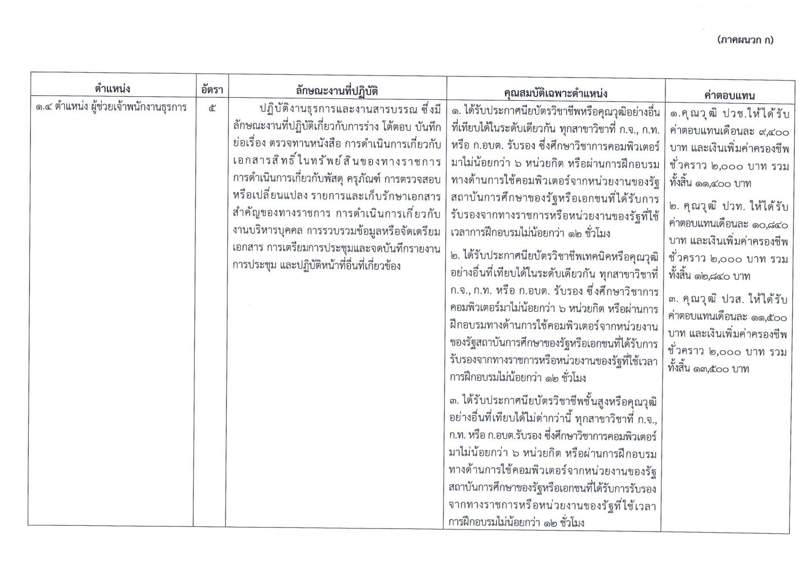 1.1.4 ตำแหน่ง ผู้ช่วยเจ้าพนักงานธุรการ จำนวน 5 อัตรา