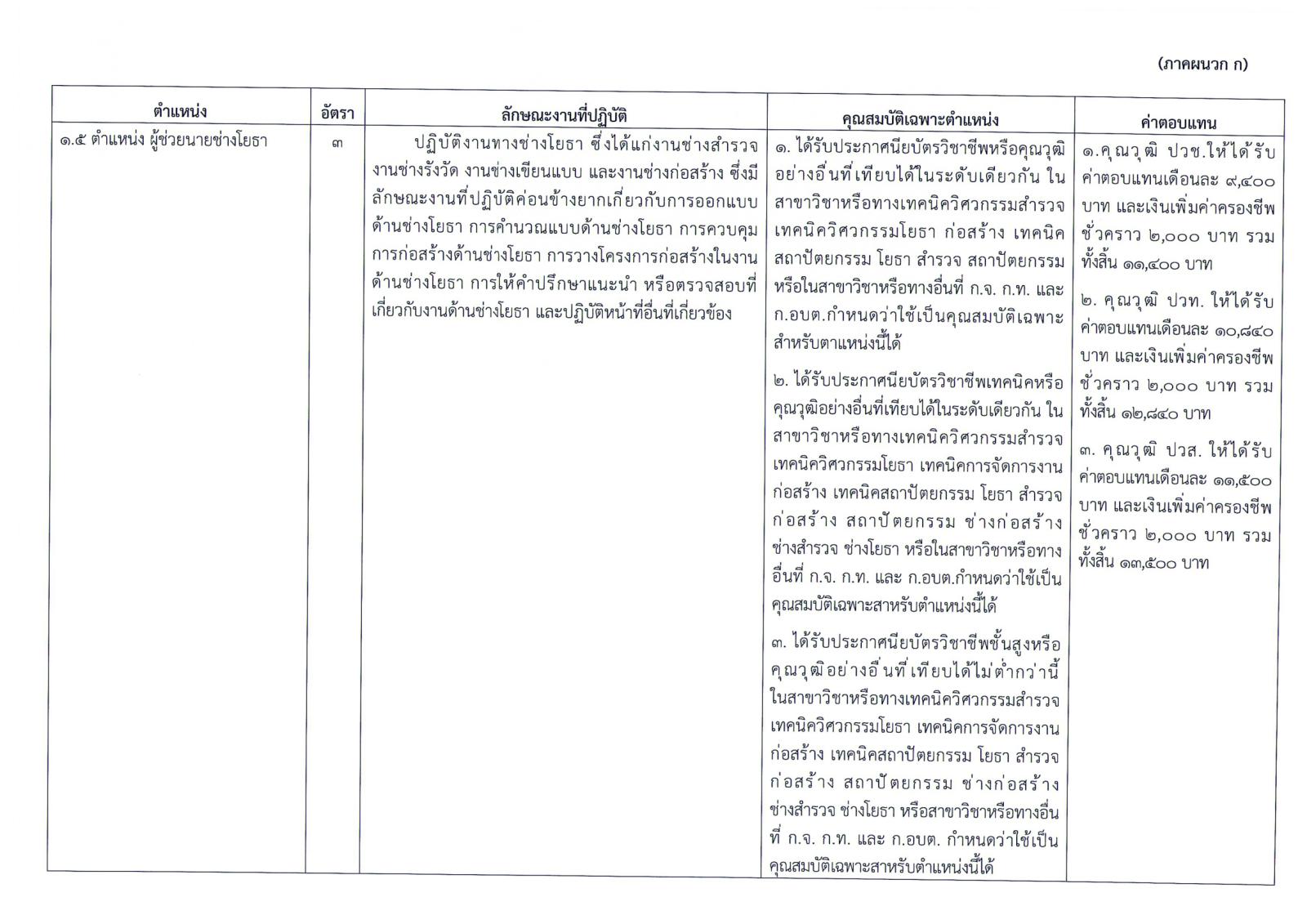 1.1.5 ตำแหน่ง ผู้ช่วยนายช่างโยธา จำนวน 3 อัตรา