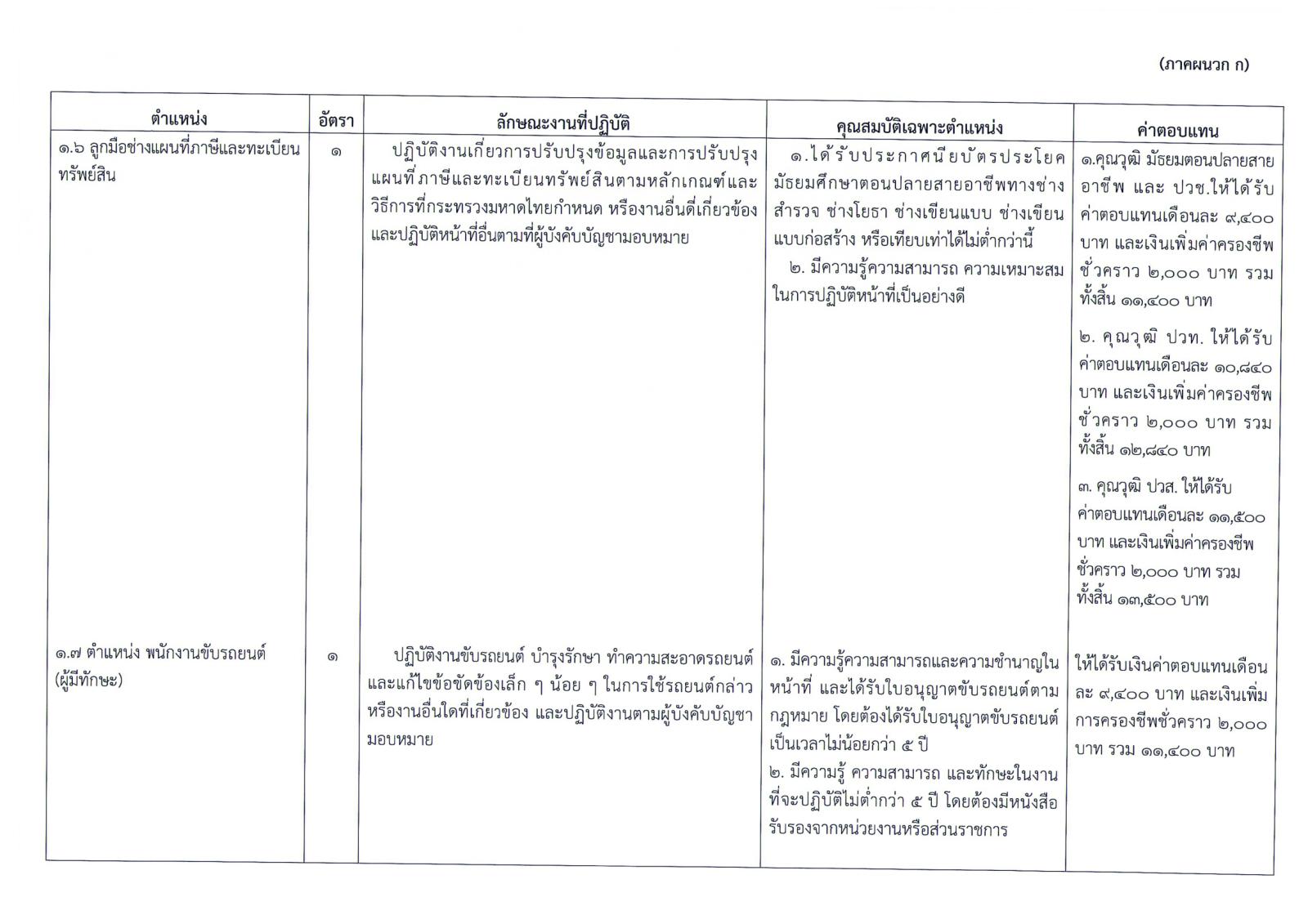 1.1.6 ตำแหน่ง ลูกมือช่างแผนที่ภาษีและทะเบียนทรัพย์สิน จำนวน 1 อัตรา