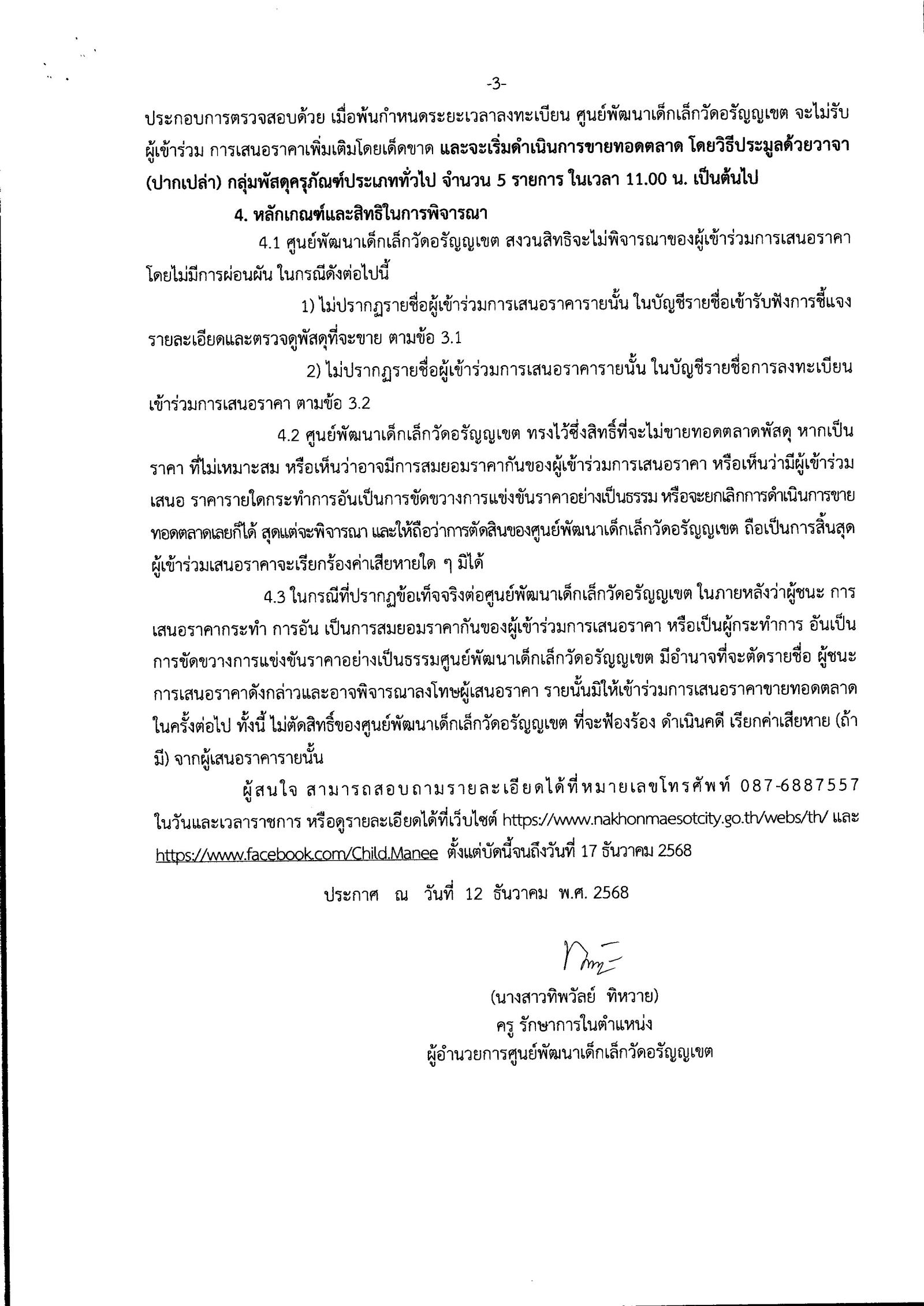 เทศบาลนครแม่สอด ขอประชาสัมพันธ์ การขายทอดตลาดพัสดุที่มีสภาพชำรุด จำนวน 4 รายการ ในวันพฤหัสบดีที่ 18 ธันวาคม 2568 โดยเริ่มประมูลตั้งแต่เวลาตั้งแต่เวลา 09.00 - 10.00 น. ณ ที่ทำการด่านศุลกากรแม่สอด