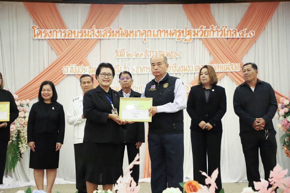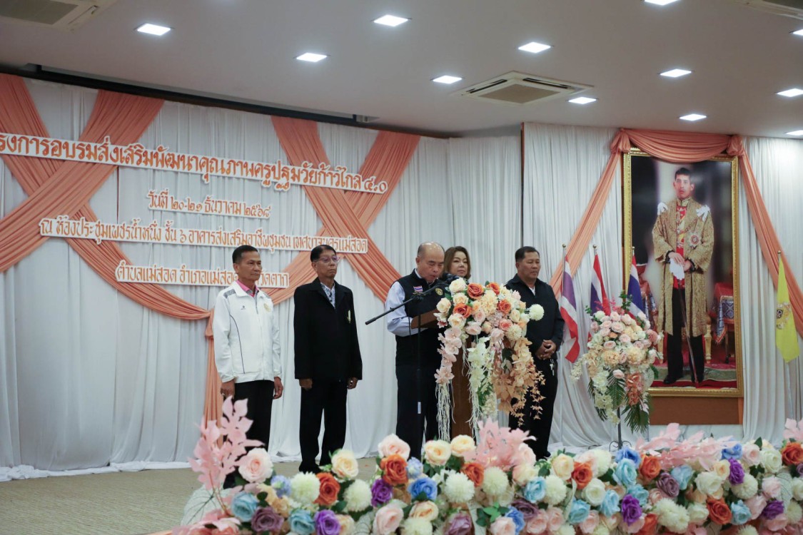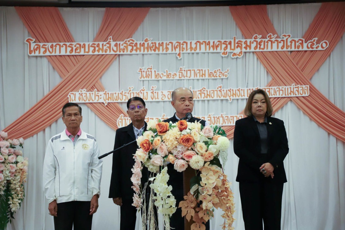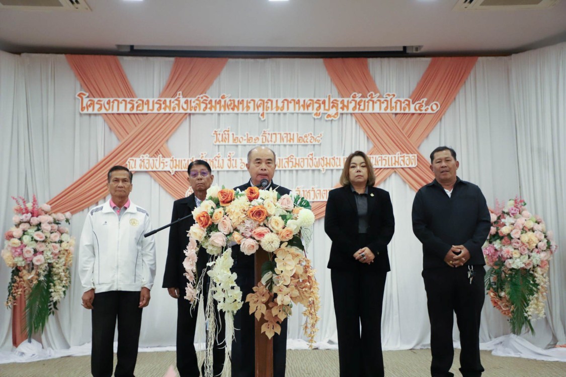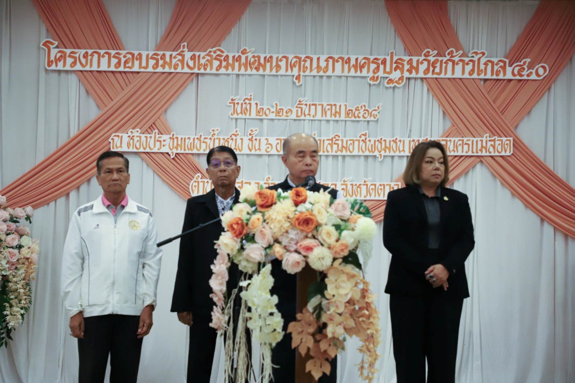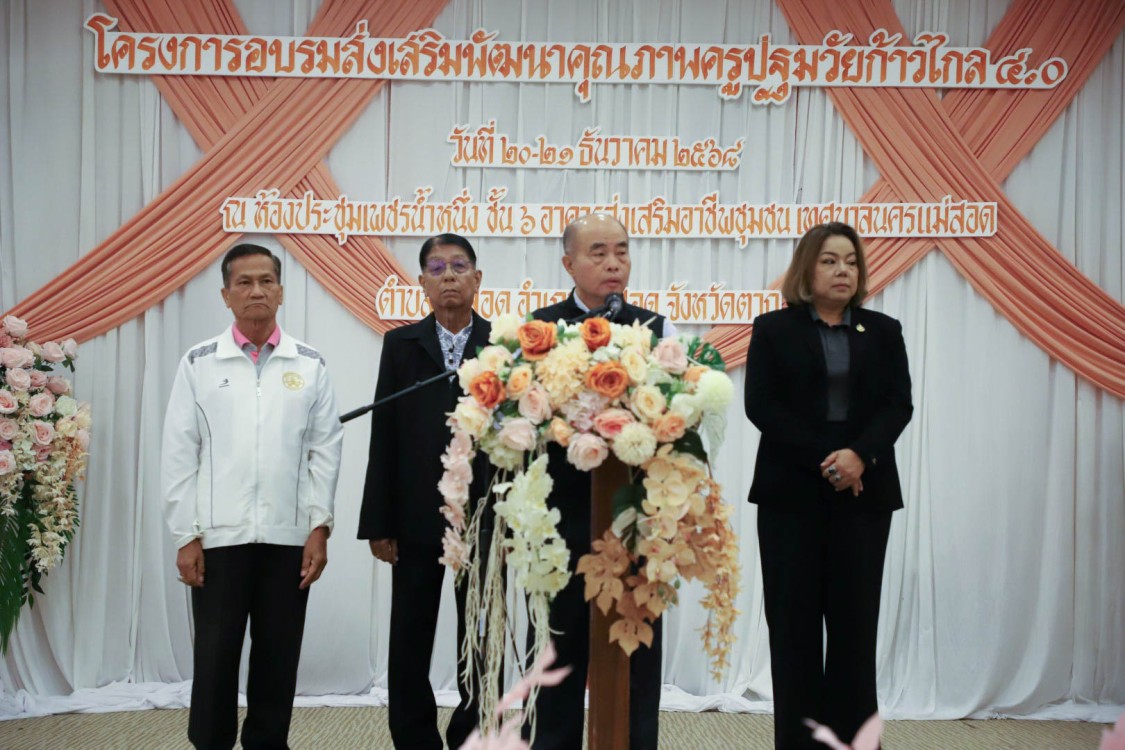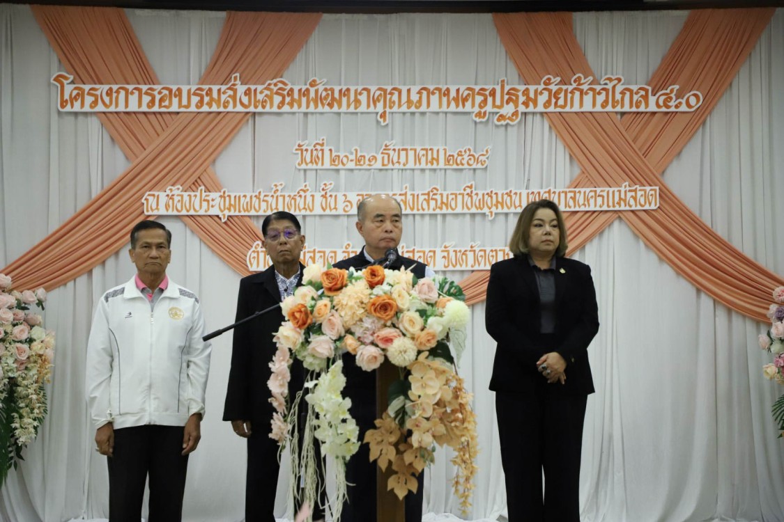 ใจโปร่ง รองนายกเทศมนตรีนครแม่สอด เป็นประธานในพิธีฯ โดยมีคณะผู้บริหารเทศบาลนครแม่สอด สมาชิกสภา หัวหน้าส่วนราชการ ผู้อำนวยการสถานศึกษา และเจ้าหน้าที่กองการศึกษา เข้าร่วมพิธีเปิดโครงการอบรมส่งเสริมพัฒนาคุณภาพครูปฐมวัยก้าวไกล 4.0 ซึ่งมีนางสาวเสาวนีย์ อุดด้วง รองปลัดเทศบาลเทศบาลนครแม่สอด เป็นผู้กล่าวรายงานในพิธีฯ โดยจัดอบรมในระหว่างวันที่ 20 – 21 ธันวาคม พ.ศ. 2568 เพื่อให้ครูปฐมวัยและครูประถมศึกษาในสังกัดเทศบาลนครแม่สอดที่เข้าร่วมอบรมพัฒนาองค์ความรู้ พัฒนาสมรรถนะ และแลกเปลี่ยนประสบการณ์ ให้มีความรู้ ความสามารถและทักษะที่สอดคล้องกับการเปลี่ยนแปลงในโลกยุคดิจิทัล และนำไปประยุกต์ใช้ในการจัดการเรียนการสอนอย่างมีประสิทธิภาพต่อไป