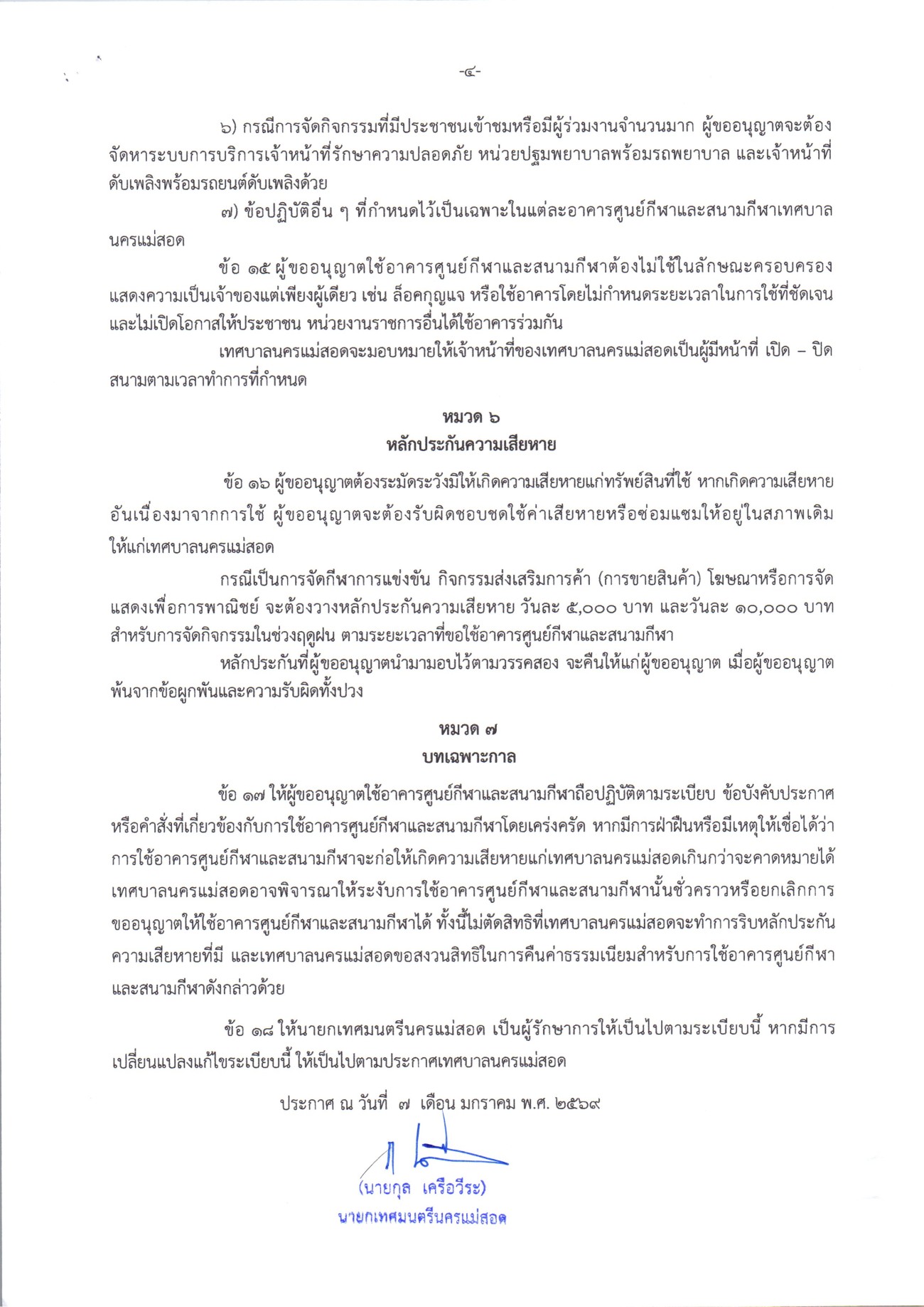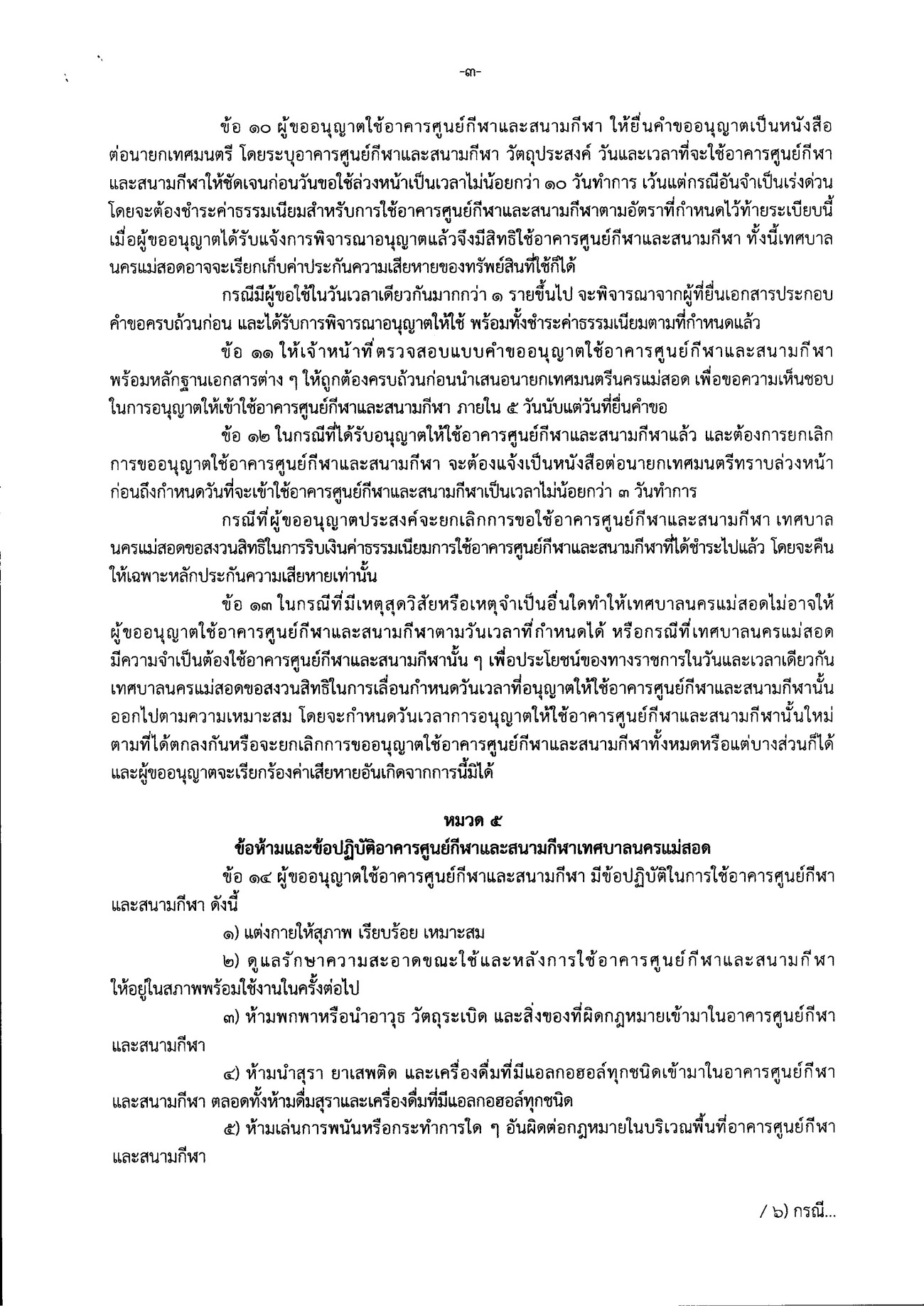 ประกาศเทศบาลนครแม่สอด เรื่อง การขออนุญาตใช้อาคารศูนย์กีฬาและสนามกีฬาเทศบาลนครแม่สอด พ.ศ.2569