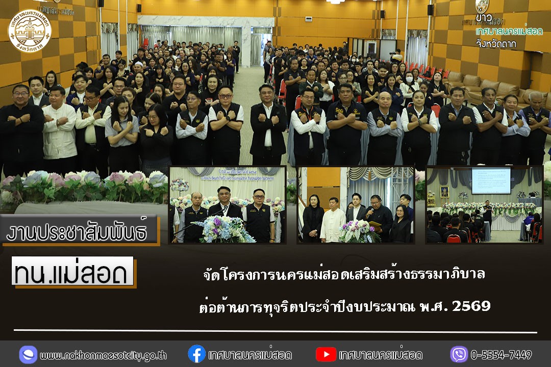 ทน.แม่สอด จัดโครงการนครแม่สอดเสริมสร้างธรรมาภิบาลต่อต้านการทุจริตประจำปีงบประมาณ พ.ศ. 2569