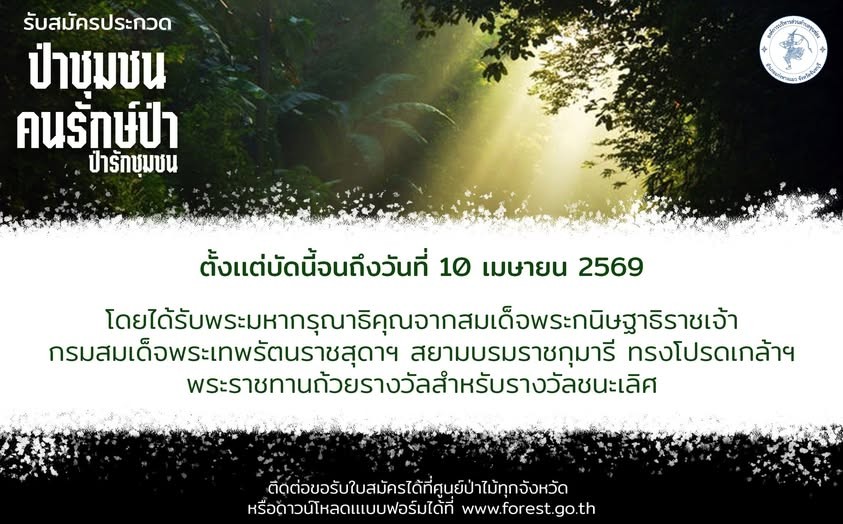 " ประจำปี 2569 เพื่อเชิดชูชุมชนที่ดูแลป่าอย่างยั่งยืน โดยเน้นป่าที่มีความอุดมสมบูรณ์ การมีส่วนร่วม และการพัฒนาที่ยั่งยืน