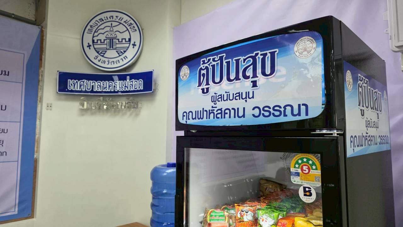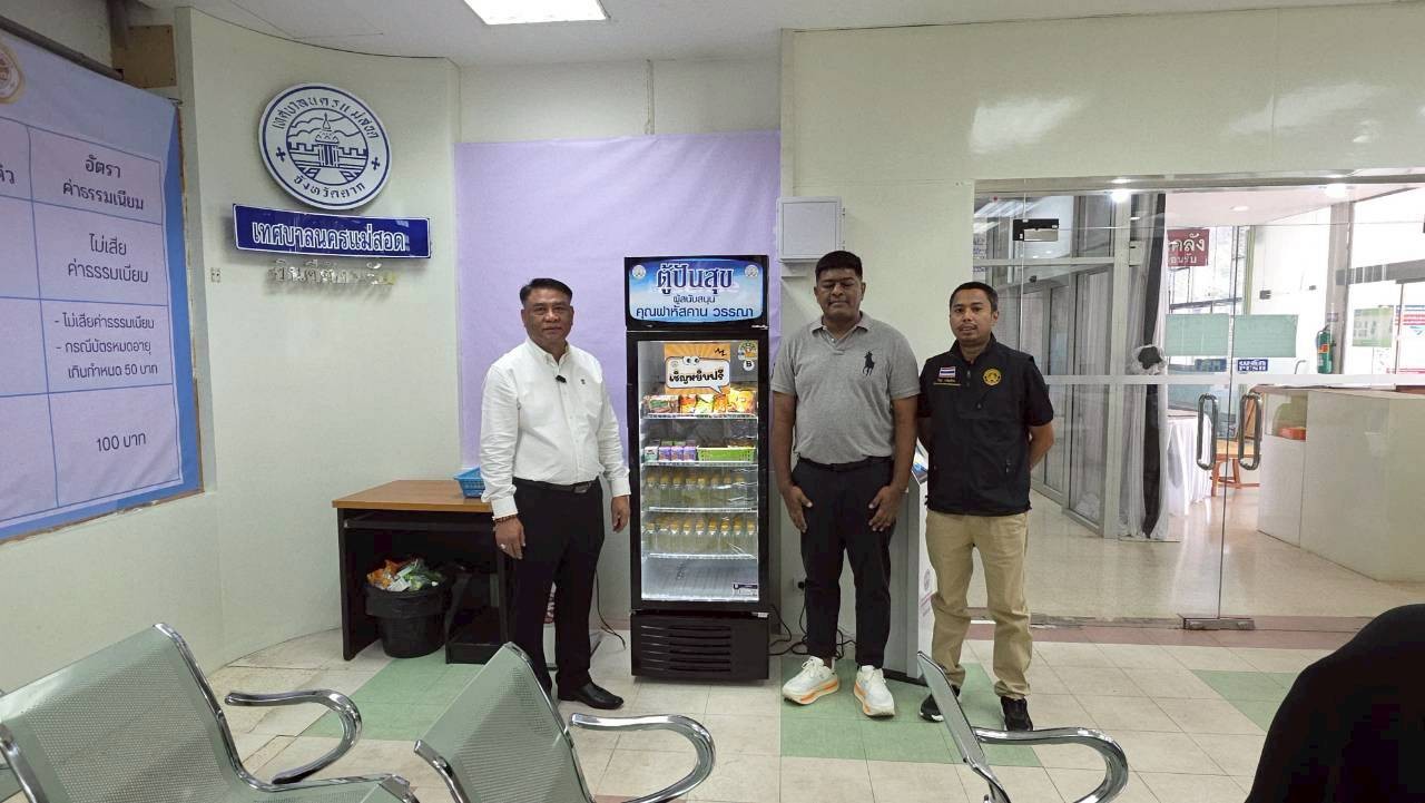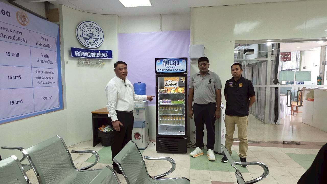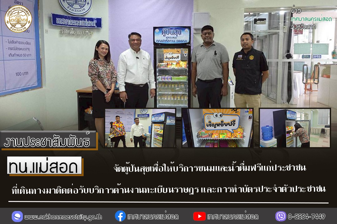ทน.แม่สอด จัดตู้ปันสุขเพื่อให้บริการขนมและน้ำดื่มฟรีแก่ประชาชนที่เดินทางมาติดต่อรับบริการด้านงานทะเบียนราษฎร และการทำบัตรประจำตัวประชาชน