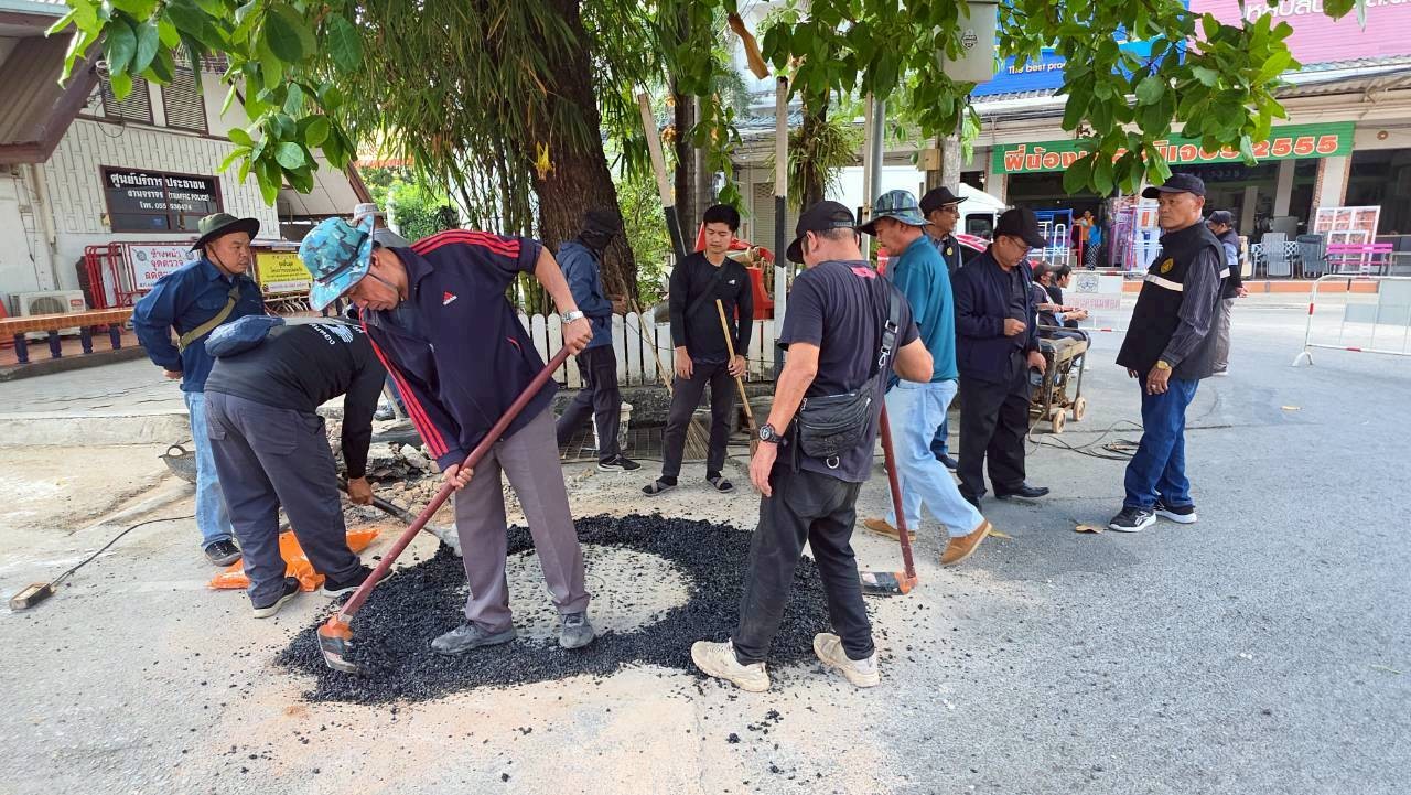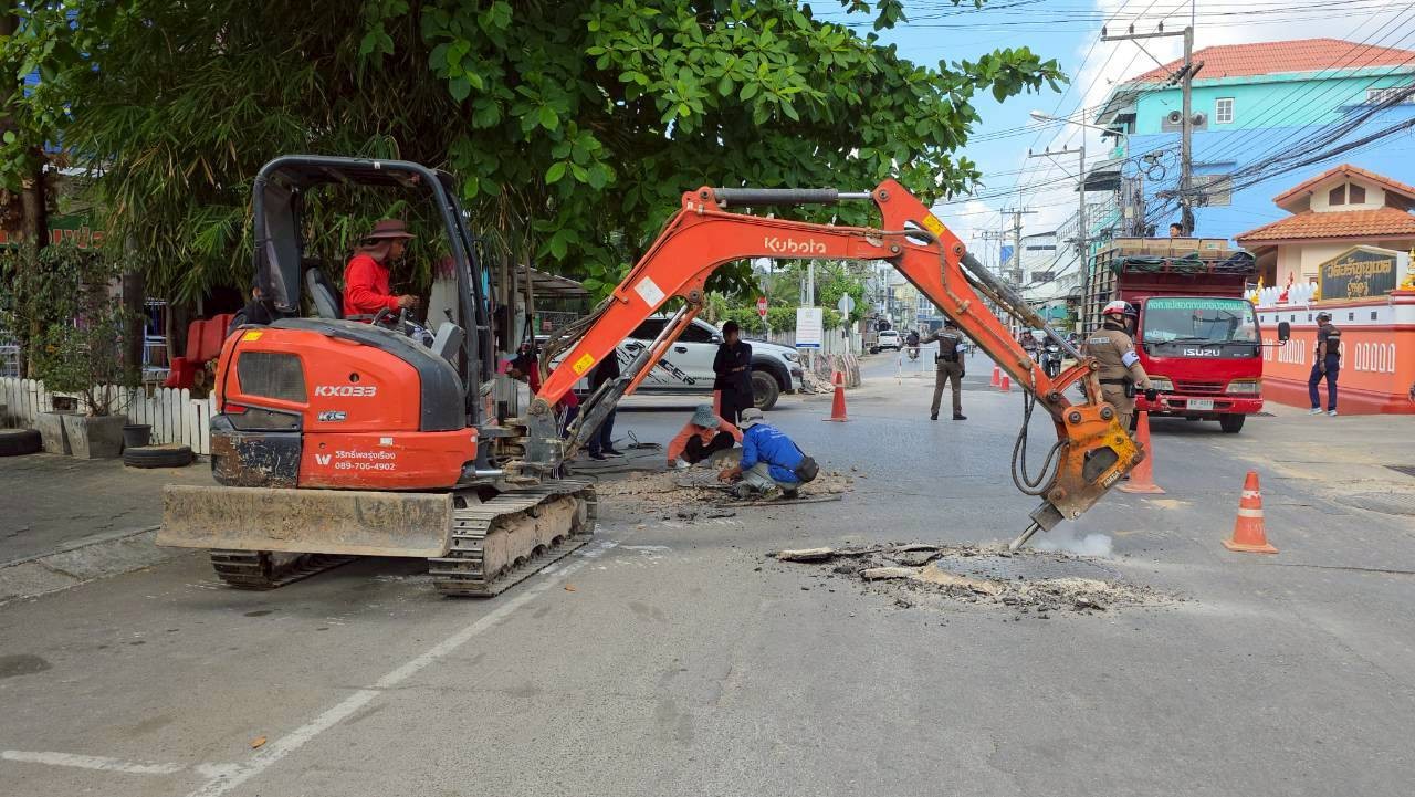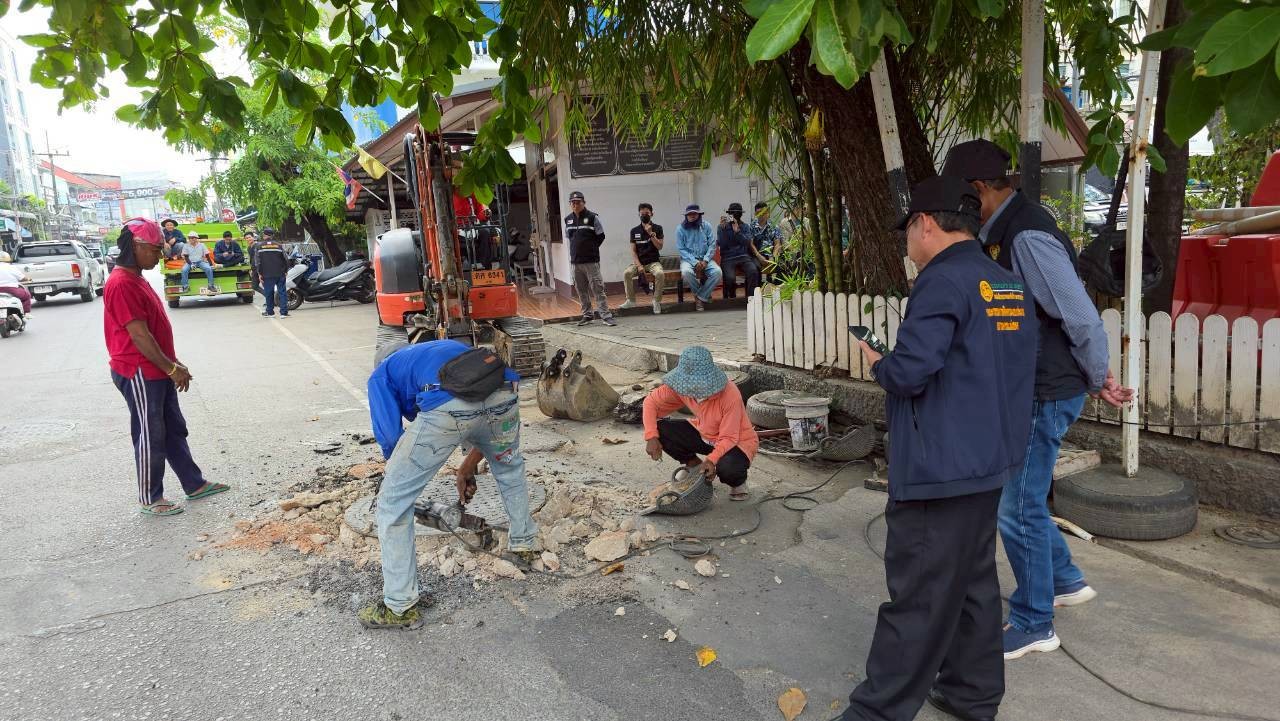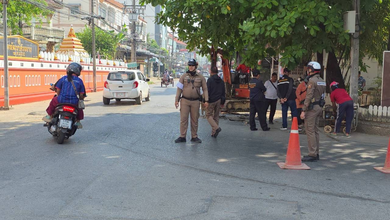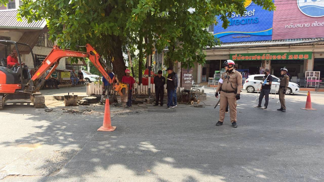 เทศบาลนครแม่สอด ลงพื้นที่ขุดปรับฝาท่อระบายน้ำหน้าวัดอรัญญเขต