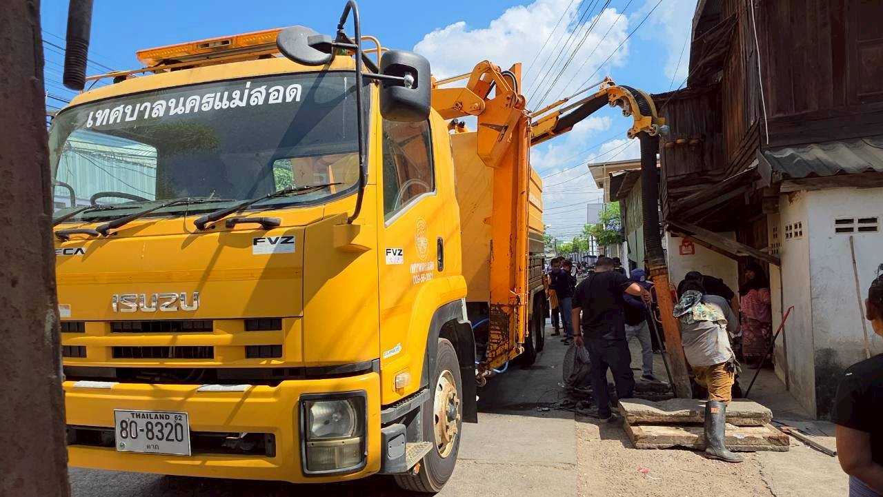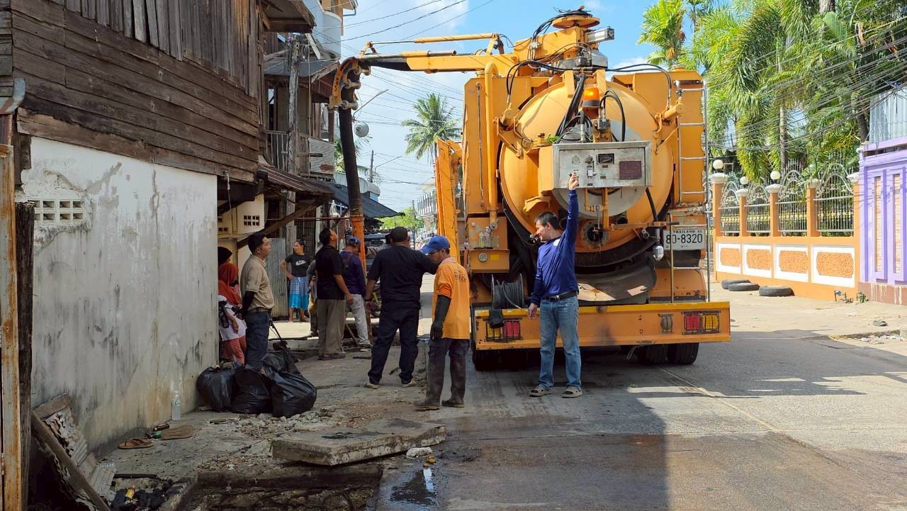 เทศบาลนครแม่สอด ลงพื้นที่ดำเนินการดูดโคลนและ ขุดลอกท่อระบายน้ำในเขตพื้นที่เทศบาลนครแม่สอด