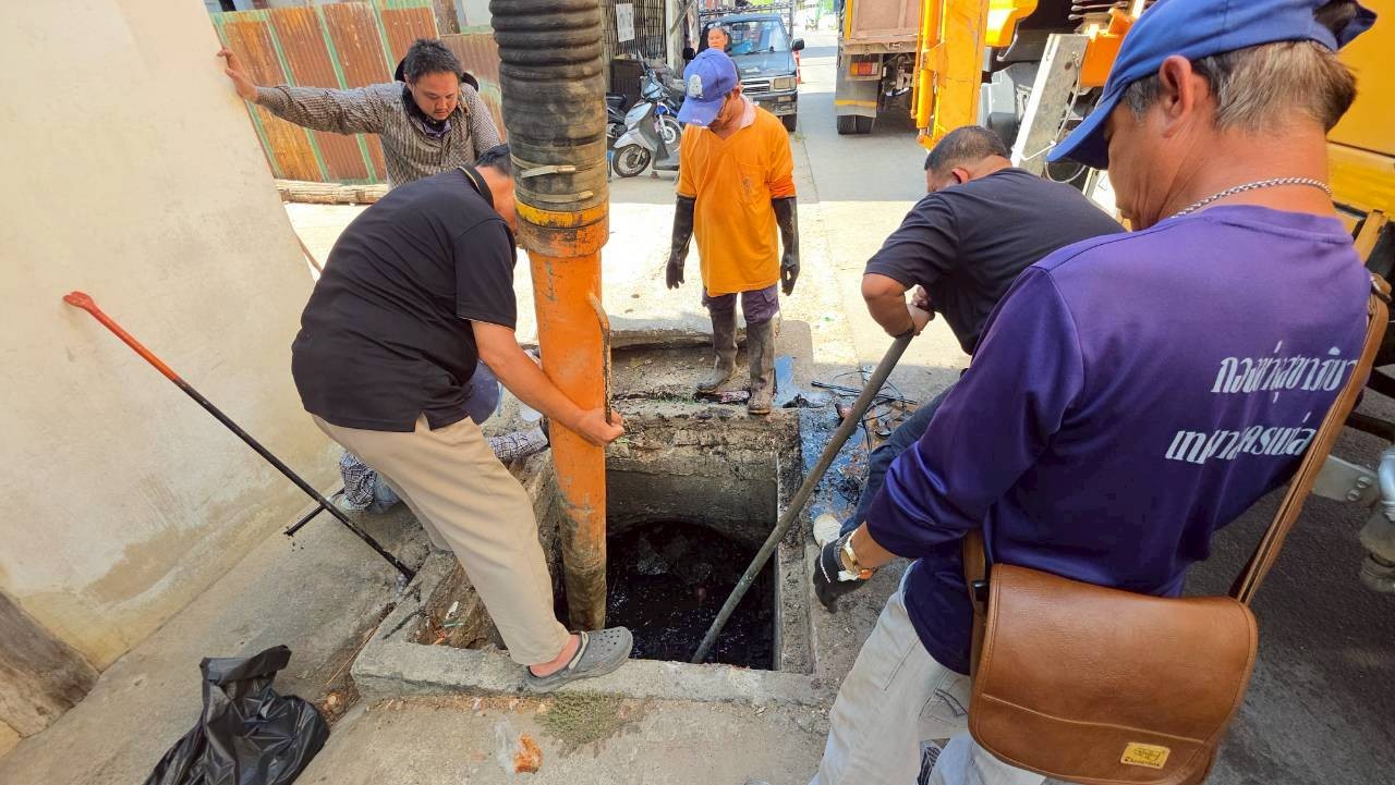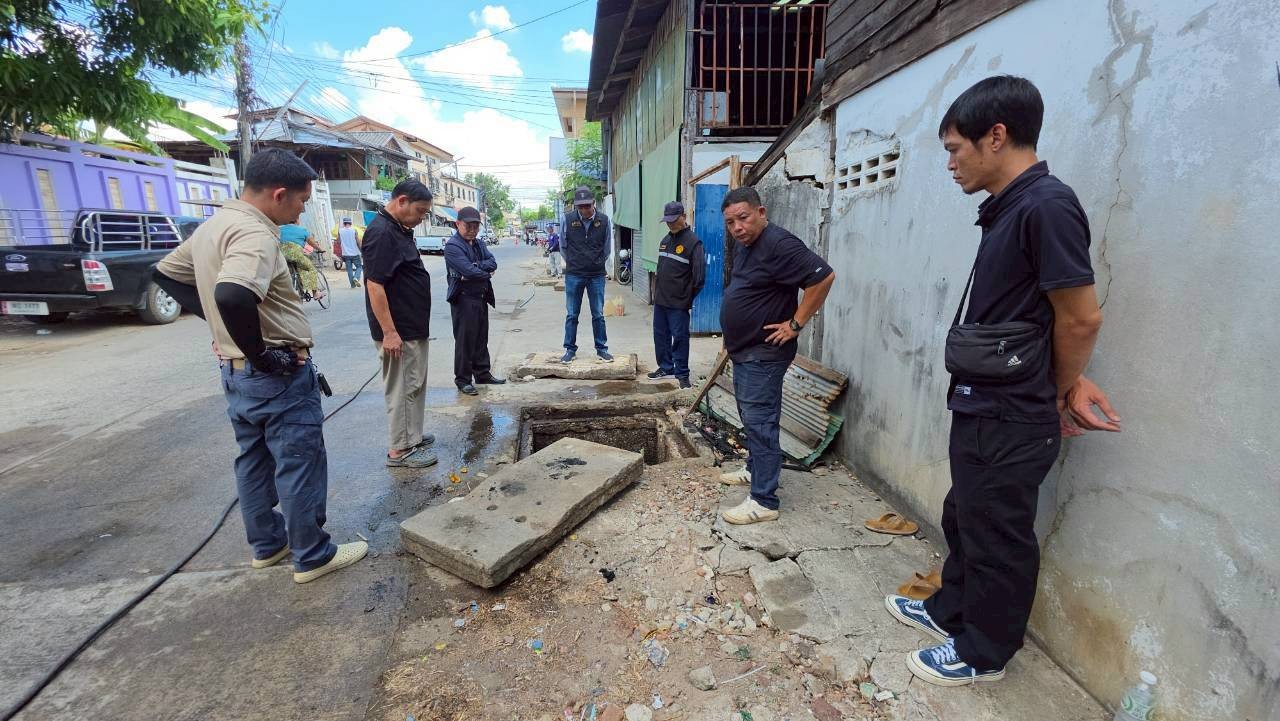 เทศบาลนครแม่สอด ลงพื้นที่ขุดปรับฝาท่อระบายน้ำหน้าวัดอรัญญเขต