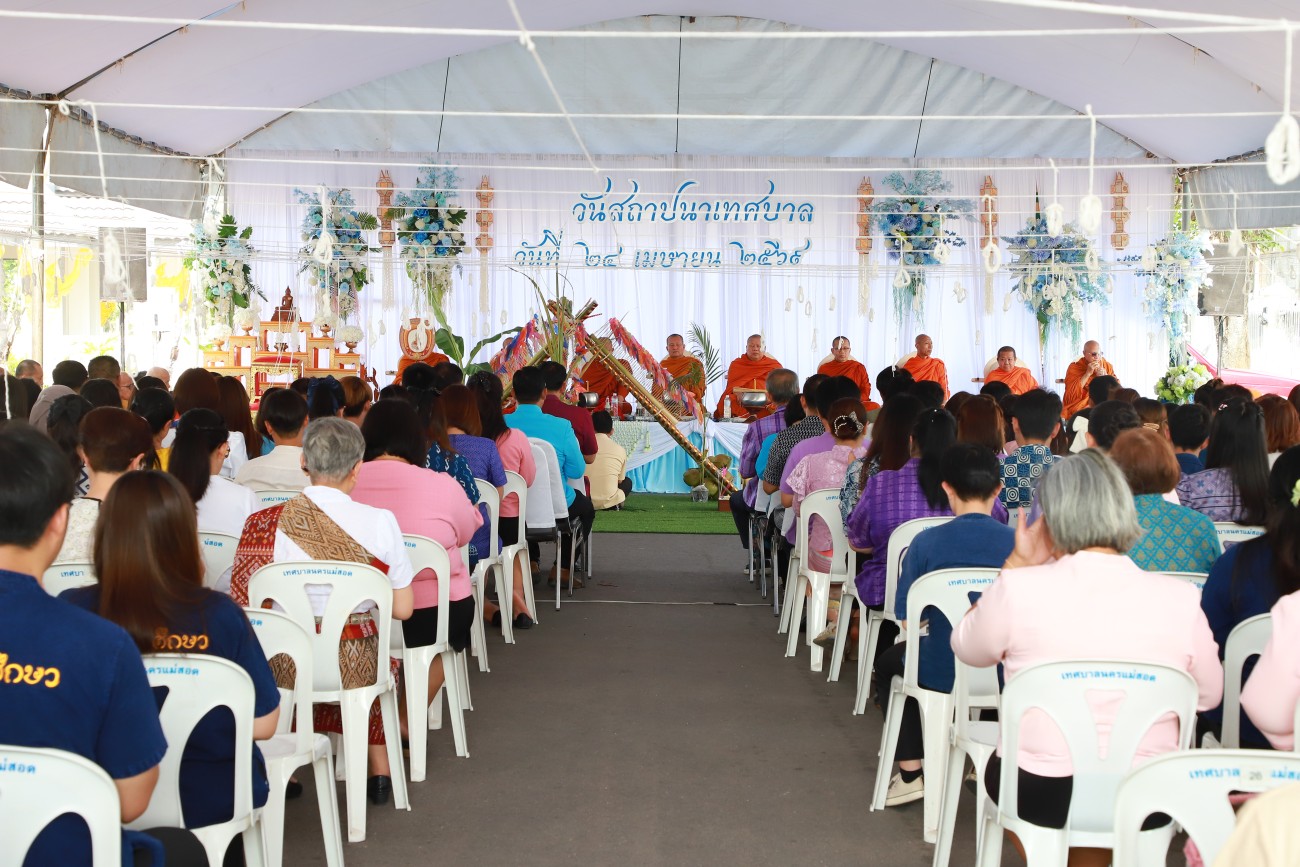 นายกุล เครือวีระ นายกเทศมนตรีนครแม่สอด พร้อมด้วย คณะผู้บริหาร สมาชิกสภาเทศบาลนครแม่สอด รองปลัดเทศบาลนครแม่สอด หัวหน้าส่วนราชการ ข้าราชการ และพนักงานสังกัดเทศบาลนครแม่สอด ร่วมกิจกรรม วันเทศบาล ประจำปี 2569 ในกิจกรรมมีพิธีสงฆ์สวดเจริญพระพุทธมนต์ และ พิธีทำบุญพระพิทักษ์ชายแดน เพื่อเป็นสิริมงคลแก่องค์กร บุคลากร และผู้ร่วมงาน โดยมี กิจกรรม รดน้ำขอพรคณะผู้บริหาร กิจกรรม 5 ส. ทำความสะอาดสถานที่ปฏิบัติงานของแต่ละกอง การจัดกิจกรรมวันเทศบาลครั้งนี้ เพื่อรำลึกถึงความเป็นมา ในการจัดตั้งเทศบาล ซึ่งเป็นหน่วยงานราชการส่วนท้องถิ่นมีหน้าที่บำบัดทุกข์บำรุงสุข แก่ประชาชนในท้องถิ่น ตลอดจนเป็นการเปิดโอกาสให้พนักงานเทศบาลได้มีส่วนร่วมในการจัดกิจกรรมฯ