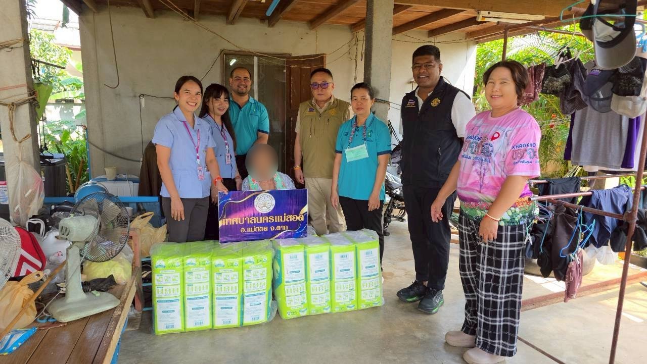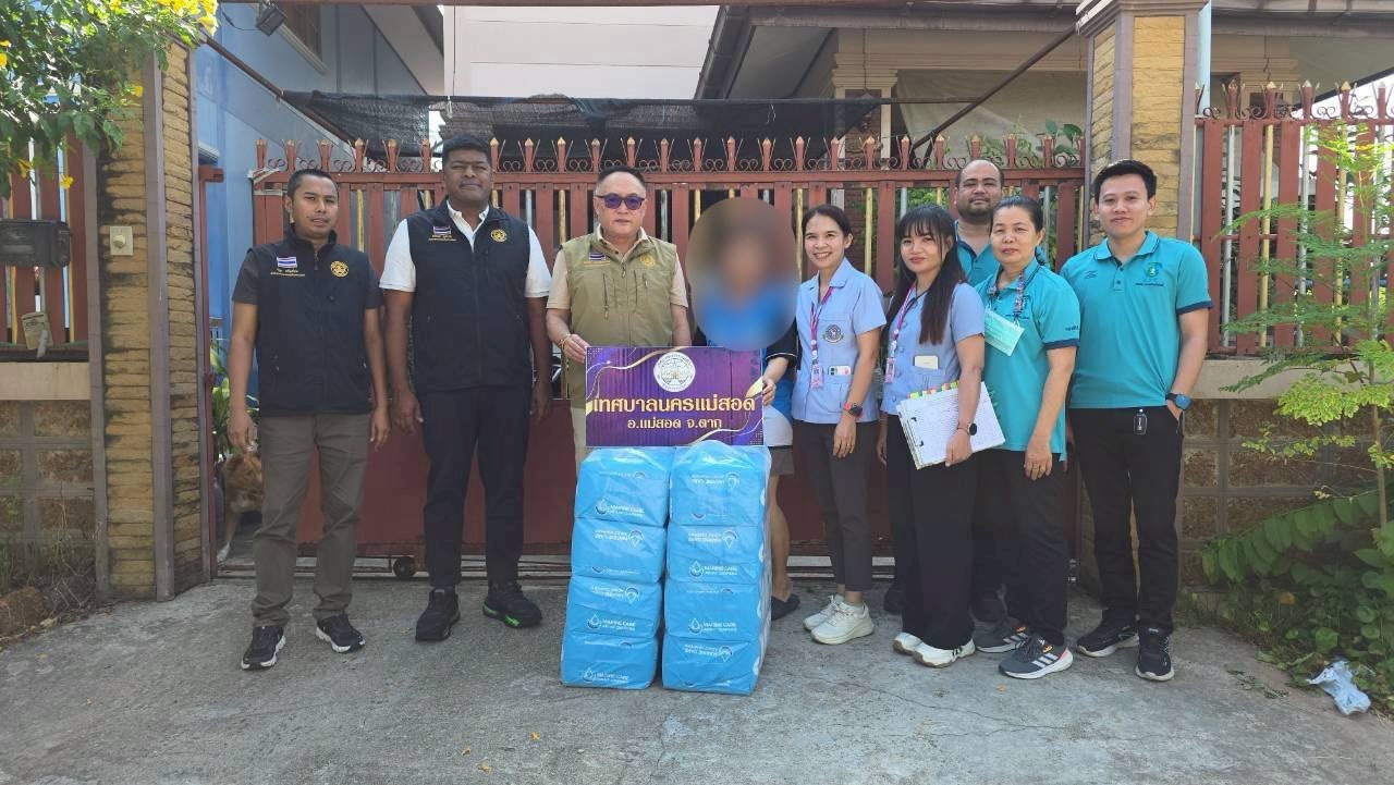 นายกุล เครือวีระ นายกเทศมนตรีนครแม่สอด มอบหมายให้ นายอภิปัตย์ อุปการะ รองนายกเทศมนตรีนครแม่สอด พร้อมด้วย นายจิรวัฒน์ มงคลจุฑาเศรษฐ รองนายกเทศมนตรีนครแม่สอด ที่ปรึกษานายกเทศมนตรีนครแม่สอด นางสาวพิมลพรรณ กิตติเงิน พยาบาลวิชาชีพชำนาญการ และเจ้าหน้าที่คลินิกชุมชนอบอุ่น กองสาธารณสุขและสิ่งแวดล้อม ลงพื้นที่มอบสิ่งของผ้าอ้อมอนามัยสำหรับผู้ป่วย ผู้ยากไร้ ผู้สูงอายุ และผู้ป่วยติดเตียง ชุมชนสองแคว 1 ชุมชนสองแคว2 และชุมชนตาลเดี่ยว จำนวน 10 ราย โดยได้รับการสนับสนุนจากกองทุนหลักประกันสุขภาพท้องถิ่นเทศบาลนครแม่สอด