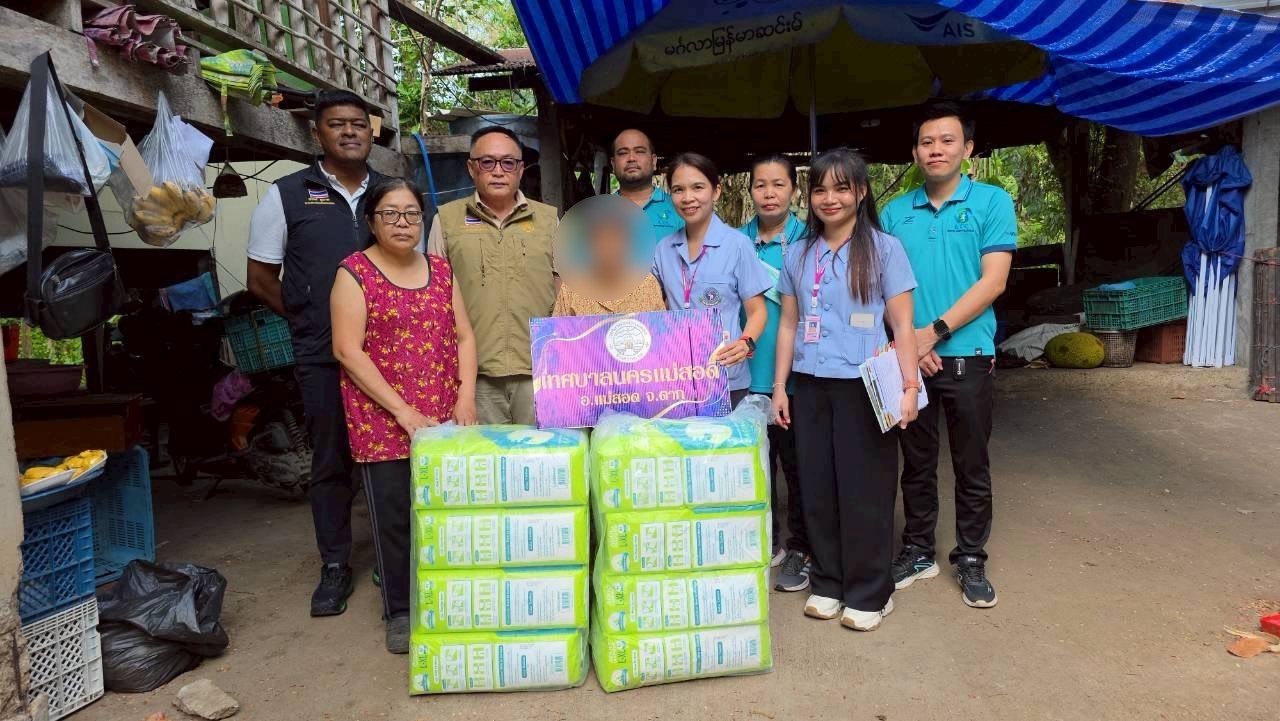 ทน.แม่สอด ลงพื้นที่มอบสิ่งของผ้าอ้อมอนามัย ให้แก่ ผู้ป่วย ผู้ยากไร้ ผู้สูงอายุ และผู้ป่วยติดเตียง ชุมชนสองแคว 1 ชุมชนสองแคว 2 และชุมชนตาลเดี่ยว จำนวน 10 ราย