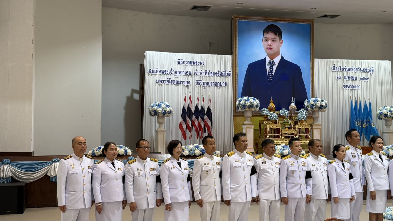 เมื่อวันพุธ ที่ 29 เมษายน 2569 เวลา 07.30 น. ณ หอประชุมจังหวัดตาก ศาลากลางจังหวัดตาก อำเภอเมือง จังหวัดตาก นายกุล เครือวีระ นายกเทศมนตรีนครแม่สอด มอบหมายให้ นายธีรรัตน์ ใจโปร่ง รองนายกเทศมนตรีนครแม่สอด พร้อมด้วย นายขวัญชัย พะยอม หัวหน้าฝ่ายวิเทศสัมพันธ์ กองยุทธศาสตร์และงบประมาณ และเจ้าหน้าที่กองยุทธศาสตร์และงบประมาณ ร่วมพิธีถวายพระพรสมเด็จพระเจ้าลูกยาเธอ เจ้าฟ้าทีปังกรรัศมีโชติ มหาวชิโรตตมางกูร สิริวิบูลยราชกุมาร โดยมี นายชูศักดิ์ รู้ยิ่ง ผู้ว่าราชการจังหวัดตาก เป็นประธานในพิธี ฯ เนื่องในโอกาสวันคล้ายวันประสูติ เพื่อแสดงความจงรักภักดีและน้อมรำลึกในพระกรุณาธิคุณ