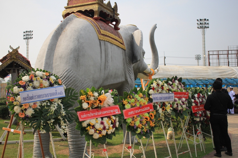 นายเจริญฤทธิ์ สงวนสัตย์ ผู้ว่าราชการจังหวัดตาก เป็นประธานพิธี พร้อมด้วย ดร.เทอดเกียรติ ชินสรนันท์ นายกเทศมนตรีนครแม่สอด พร้อมข้าราชการ พนักงานเทศบาลนครแม่สอด ข้าราชการ ทหาร ตำรวจ และกลุ่มพลังมวลชนในจังหวัดตาก เข้าร่วมประกอบพิธีวางพวงมาลาและสดุดีเฉลิมพระเกียรติ สมเด็จพระนเรศวรมหาราช เนื่องในวันพระนเรศวรมหาราช ประจำปี 2560 เพื่อเป็นการน้อมรําลึกถึงพระมหากรุณาธิคุณ ที่ทรงมีต่อประชาชนชาวไทย ที่บริเวณลานศาลสมเด็จพระนเรศวรมหาราช เทศบาลนครแม่สอด