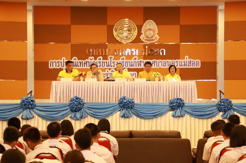 ดร.เทอดเกียรติ ชินสรนันท์ นายกเทศมนตรีนครแม่สอด เป็นประธานในพิธีปฐมนิเทศนักเรียน โรงเรียนกีฬาเทศบาลนครแม่สอด