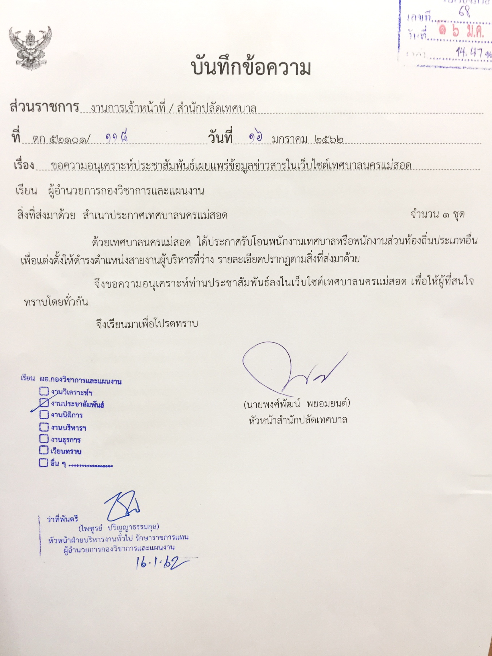 เทศบาลนครแม่สอด ขอประชาสัมพันธ์ เพื่อแสดงความคิดเห็นเกี่ยวกับผู้ที่ผ่านการตรวจสอบคุณสมบัติในการสอบคัดเลือกบุคคลเพื่อแต่งตั้งเป็นตุลาการประจำศาลปกครองชั้นต้น