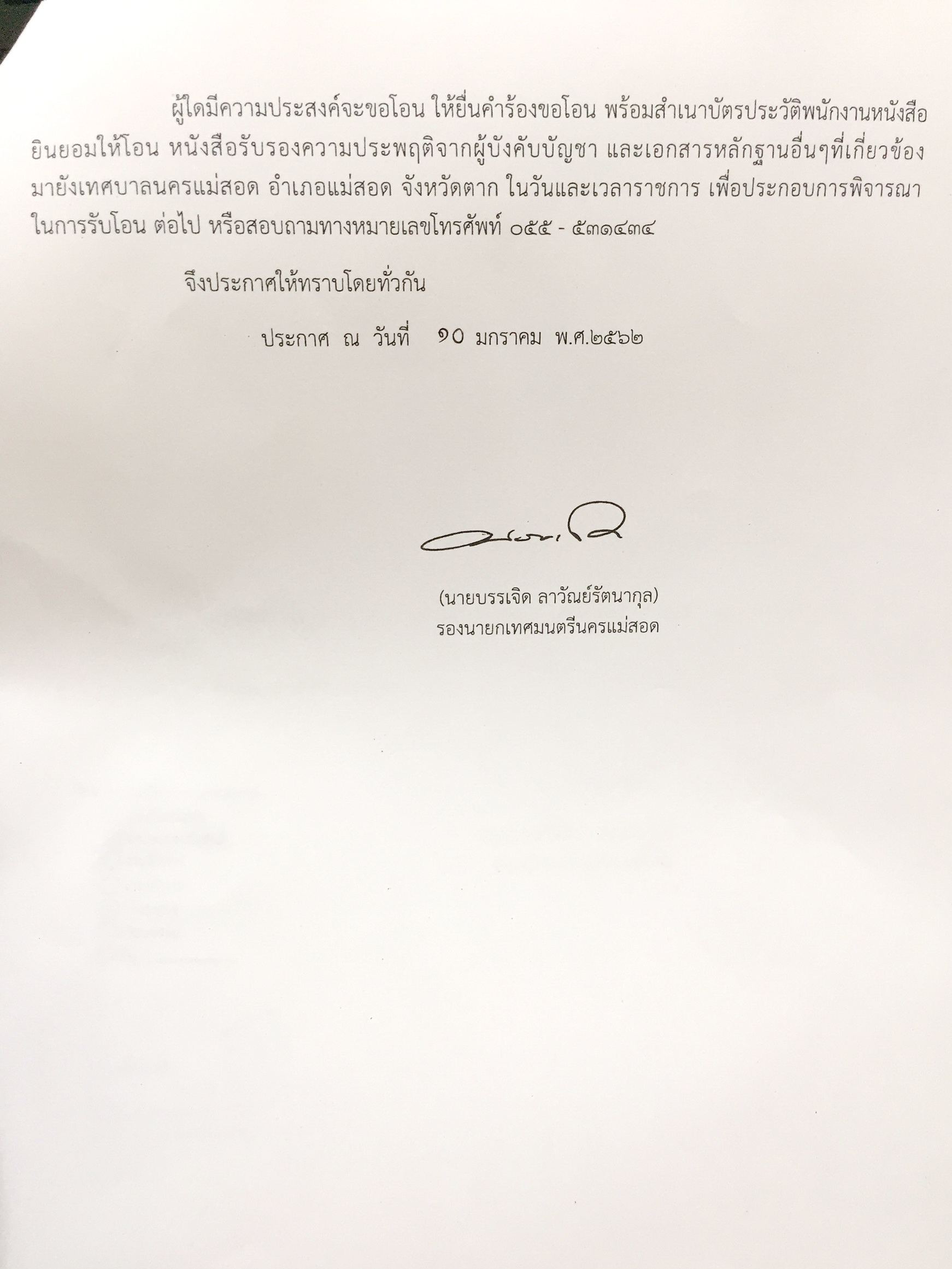 ประกาศเรียกประชุมสภาเทศบาลนครแม่สอด