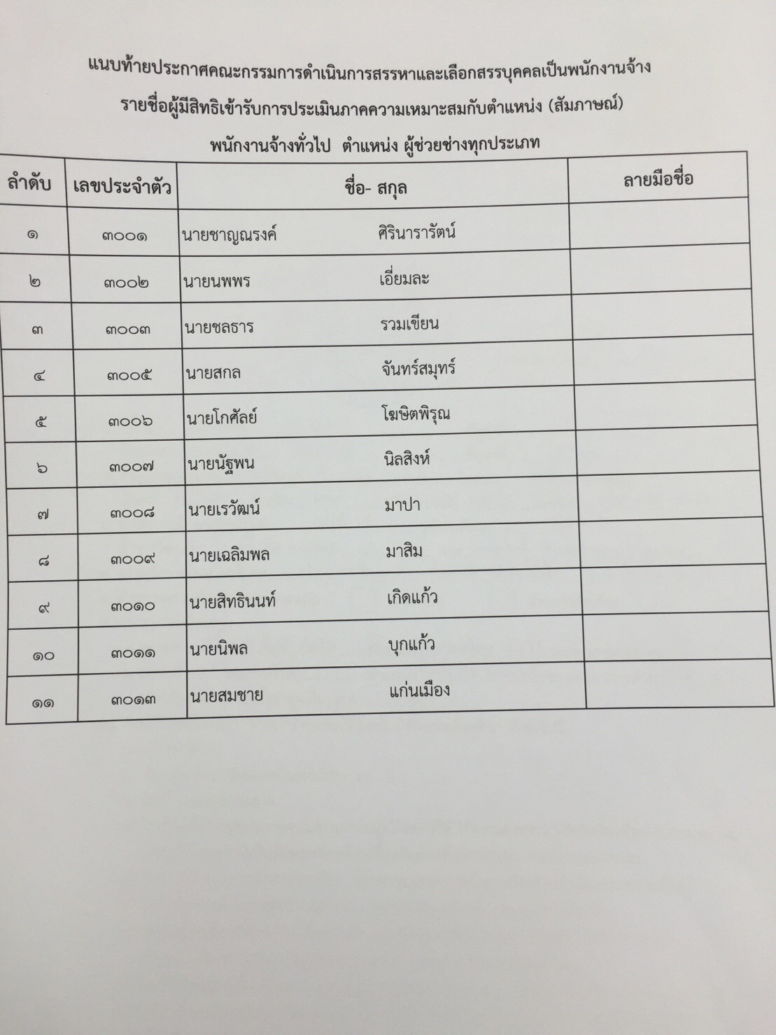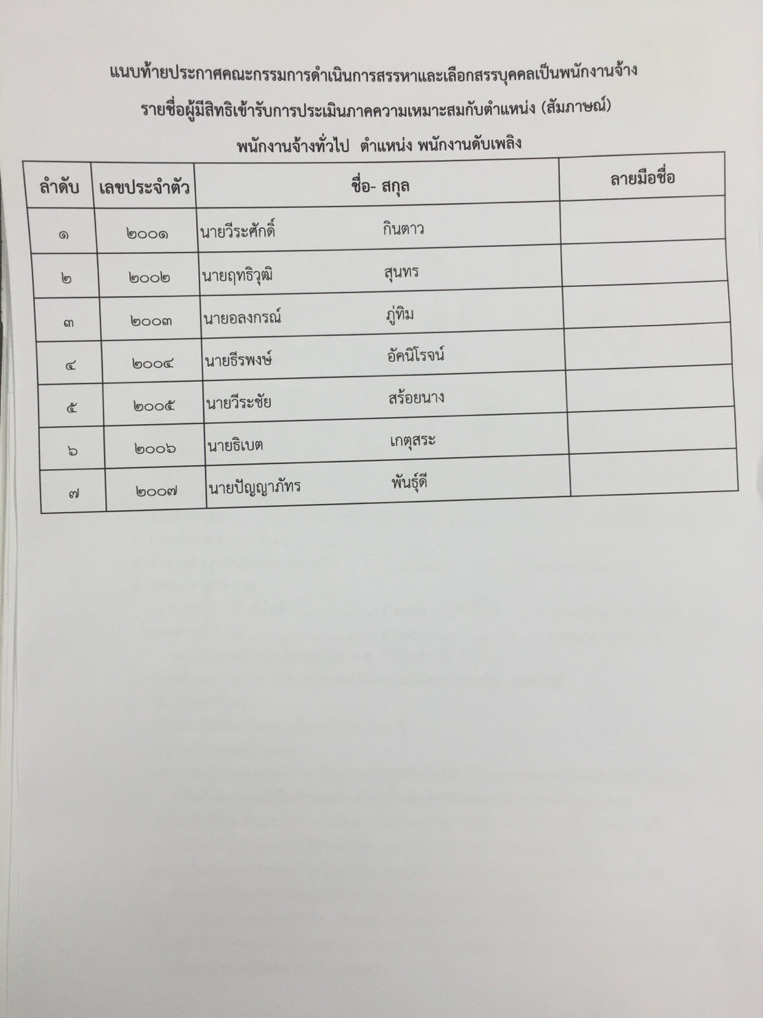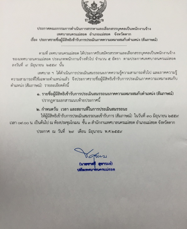 ประกาศรายชื่อผู้มีสิทธิเข้ารับการประเมินภาคความเหมาะสมกับตำแหน่ง (สัมภาษณ์)