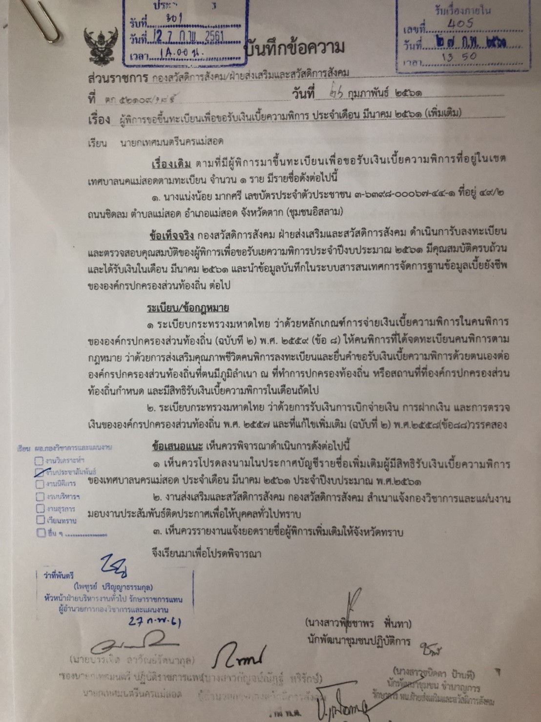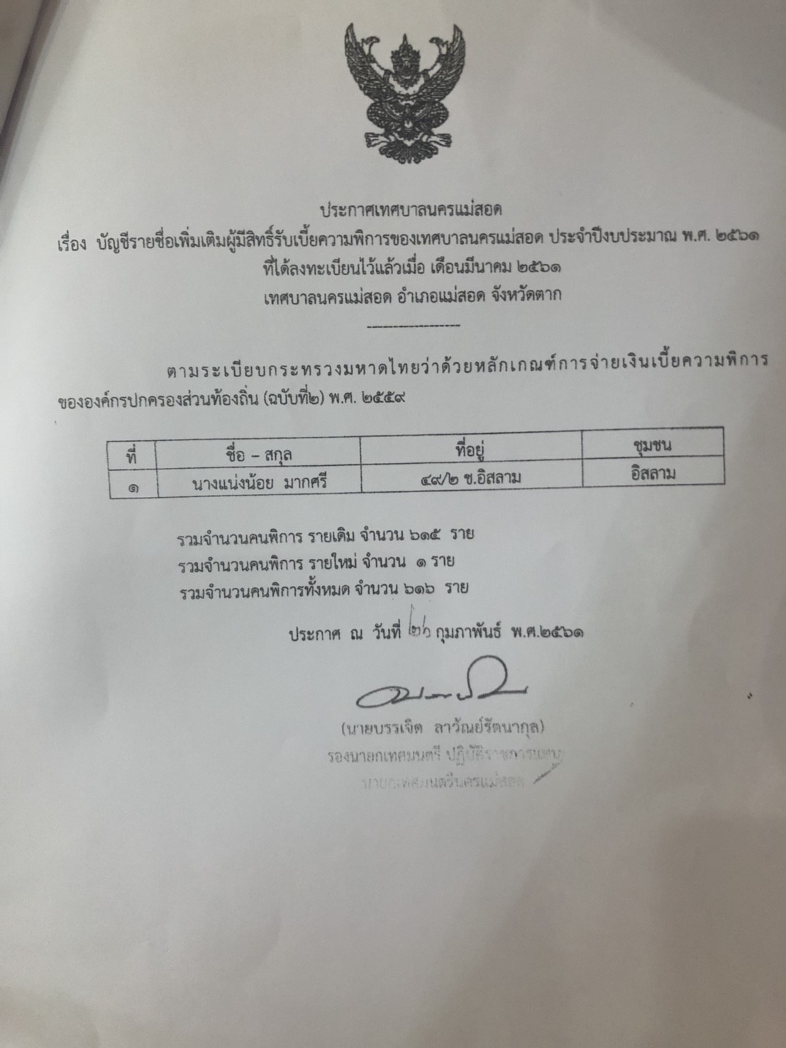 บัญชีรายชื่อผู้มีสิทธิ์รับเบี้ยความพิการ