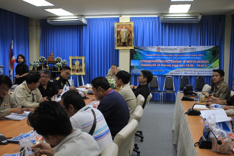 เมื่อวันที่ 28 กันยายน 2560 เวลา 13.30 น. ณ ห้องประชุมโกเมน สำนักงานเทศบาลนครแม่สอด (ชั้น3) อำเภอแม่สอด จังหวัดตาก ดร.เทอดเกียรติ ชินสรนันท์ นายกเทศมนตรีนครแม่สอด ได้เป็นประธานการประชุม เพื่อพิจารณาแนวเส้นทางเลือกและรูปแบบการก่อสร้างการศึกษาความเหมาะสมด้านเศรษฐกิจวิศวกรรมและผลกระทบสิ่งแวดล้อมเบื้องต้นทางหลวงพิเศษระหว่างสายตากแม่สอด โดยมีหัวหน้าชุมชนต่างๆกว่า 20 ชุมชน ตัวแทนส่วนราชการต่างๆ ทั้งตำรวจ ประปา การไฟฟ้า และอื่นๆเข้าร่วมกว่า 40 ท่าน