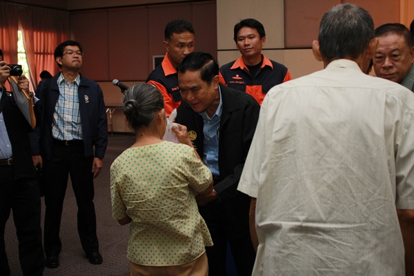 นายจารุพงศ์ กล่าวกับเจ้าหน้าที่ที่ร่วมประชุมว่า นางสาวยิ่งลักษณ์ ชินวัตร นายกรัฐมนตรีและรมว.กลาโหม ทราบข่าวน้ำท่วมในพื้นที่อำเภอ และรู้สึกเป็นห่วงมาก จึงมอบหมายให้ตนเองไปอำเภอแม่สอด ซึ่งในการเดินทางไปครั้งนี้ได้เชิญหน่วยงานที่เกี่ยวข้องไปด้วย สำหรับปัญหาน้ำท่วมนั้น ที่รุนแรงมี 2 แห่งคือ เขตเทศบาลนครแม่สอด และบริเวณพื้นที่ตำบลท่าสายลวด ทั้งนี้จะมีการประชุมเพื่อแก้ไข และป้องกันปัญหาน้ำท่วมไปหลังจากนายจารุพงศ์ กล่าวจบ ในที่ประชุมก็มีการเสนอการป้องกันและการแก้ไขปัญหาน้ำท่วม ซึ่งมีทั้งภาครัฐ ภาคเอกชน และภาคประชาชน รวมประชุม และร่วมแสดงความคิดเห็นด้วย