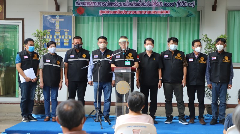 ดร.เทอดเกียรติ ชินสรนันท์ นายกเทศมนตรีนครแม่สอด ประธานในพิธีเปิดและมอบเงินช่วยเหลือผู้ประสบสภาวะยากลำบากจากสถานการณ์โควิด-19 โดยมีคณะผู้บริหาร รองประธานสภาเทศบาล สมาชิกสภาเทศบาล ประธานสภาอบจ.ตาก คณะกรรมการช่วยเหลือประชาชนในเขตเทศบาลนครแม่สอด เข้าร่วมพิธีมอบเงินช่วยเหลือผู้ประสบสภาวะยากลำบากจากสถานการณ์โรคติดเชื้อไวรัสโคโรนา 2019 (โควิด-19) ศูนย์ช่วยเหลือประชาชนเทศบาลนครแม่สอด จำนวน 98 ราย