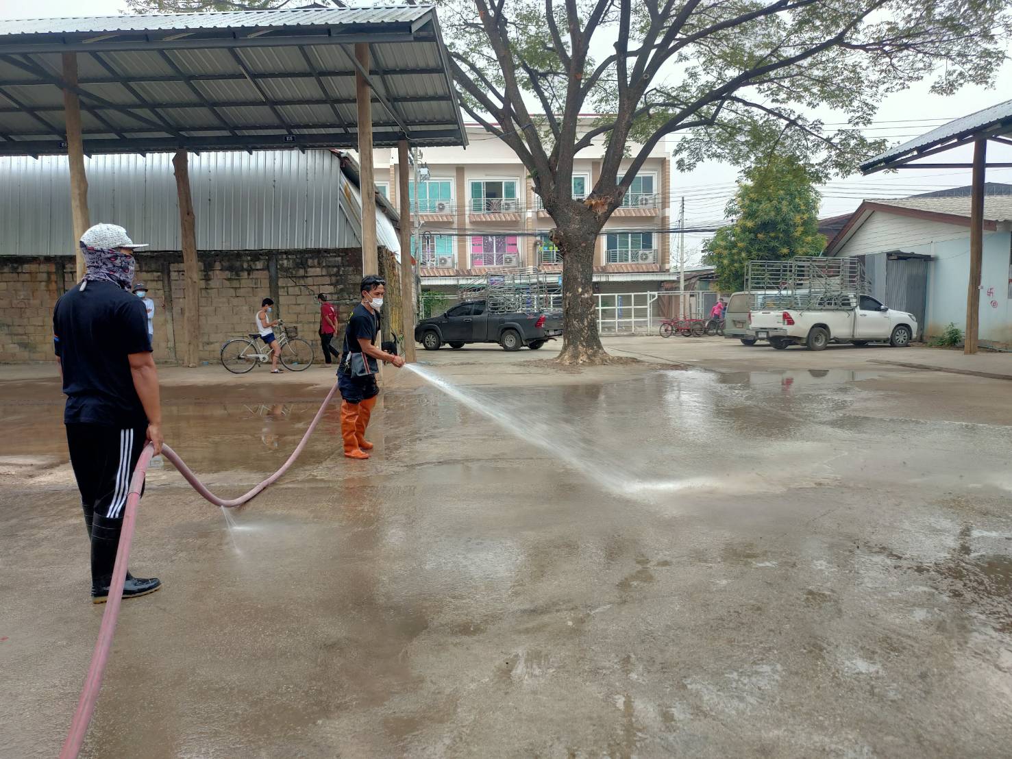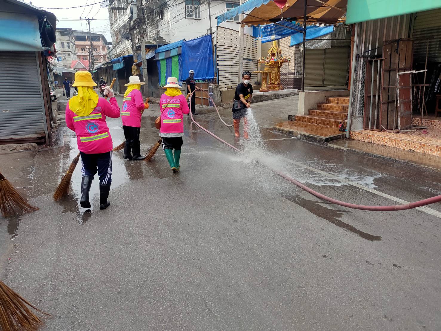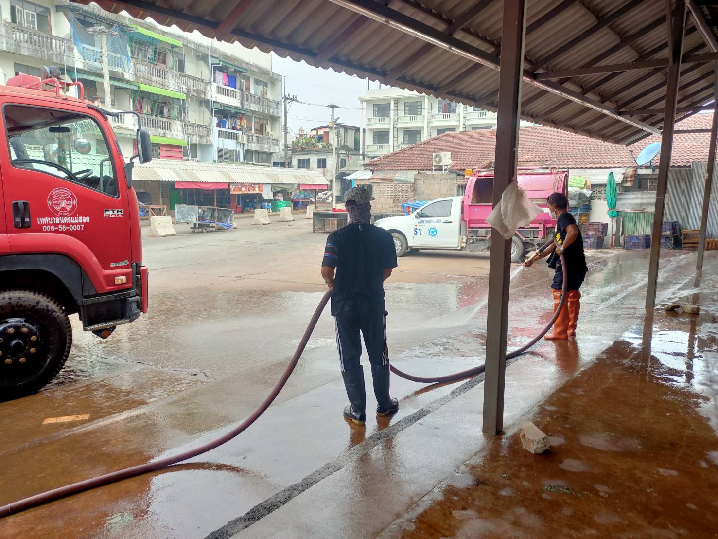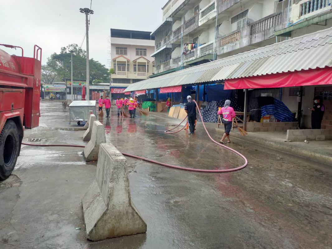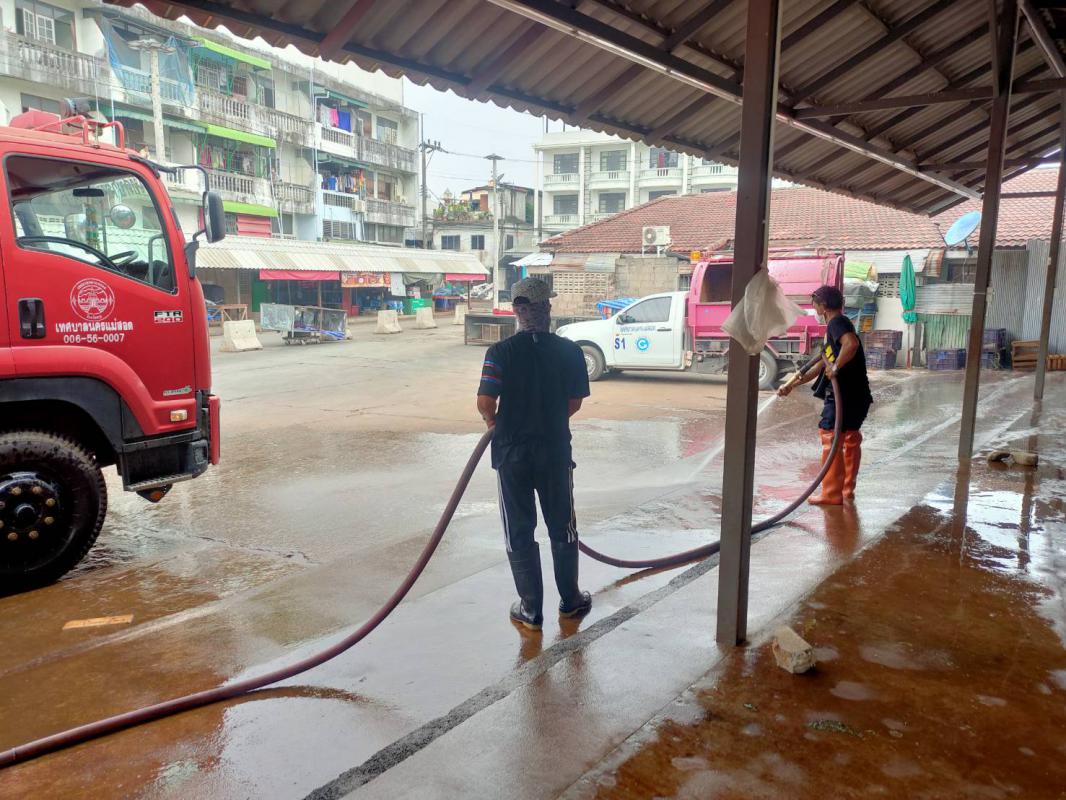 นางสาวกัญจน์ณัฏฐ์ หริรักษ์ ผู้อำนวยการกองสวัสดิการสังคม รักษาราชการแทนปลัดเทศบาล ปฏิบัติหน้าที่นายกเทศมนตรีนครแม่สอด มอบหมายให้ ฝ่ายป้องกันและบรรเทาสาธารณภัยเทศบาลนครแม่สอด เจ้าหน้าที่สาธารณสุข ร่วมกันทำความสะอาดตลาดพาเจริญและตลาดสดนครแม่สอด โดยเทศบาลได้นำรถน้ำดำเนินการฉีดพ่นล้างในตลาดสด และพ่นยาฆ่าเชื้อบริเวณโดยรอบทั้งหมดให้สะอาดปราศจากเชื้อโรคต่างๆ เพื่อป้องกันการแพร่ระบาดโรคติดเชื้อไวรัสโคโรนา 2019 (โควิด-19) ทั้งนี้ยังได้รับความร่วมมือจากเทศกิจเทศบาลนครแม่สอดดูแลด้านการจราจร