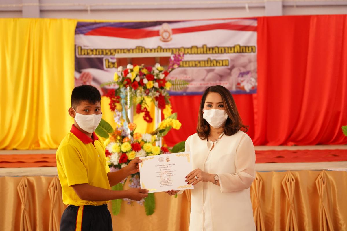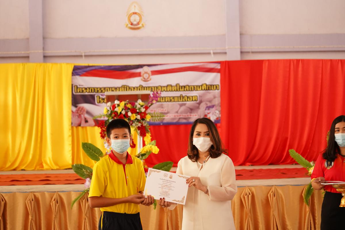 นางสาวกัญจน์ณัฏฐ์ หริรักษ์ ผู้อำนวยการกองสวัสดิการสังคม รักษาราชการแทนปลัดเทศบาล ปฏิบัติหน้าที่นายกเทศมนตรีนครแม่สอด เป็นประธานและมอบเกียรติบัตรแก่นักเรียนที่เข้าร่วมโครงการฯ โดยมีหัวหน้าส่วนราชการ ผู้อำนวยการสถานศึกษาในสังกัดเทศบาลนครแม่สอด และนักเรียนโรงเรียนกีฬาเทศบาลนครแม่สอด เข้าร่วมโครงการรณรงค์ป้องกันยาเสพติดในสถานศึกษา โรงเรียนกีฬาเทศบาลนครแม่สอด เพื่อปลูกฝังค่านิยมรวมถึงรณรงค์ป้องกันยาเสพติดในสถานศึกษา ร่วมถึงให้นักเรียนได้เข้าใจถึงโทษของยาเสพติด ซึ่งได้รับเกียรติจากดาบตำรวจ เอกวัสถ์ พอกพูนธนนันท์ สังกัดสถานีตำรวจอำเภอแม่สอด เป็นวิทยากร