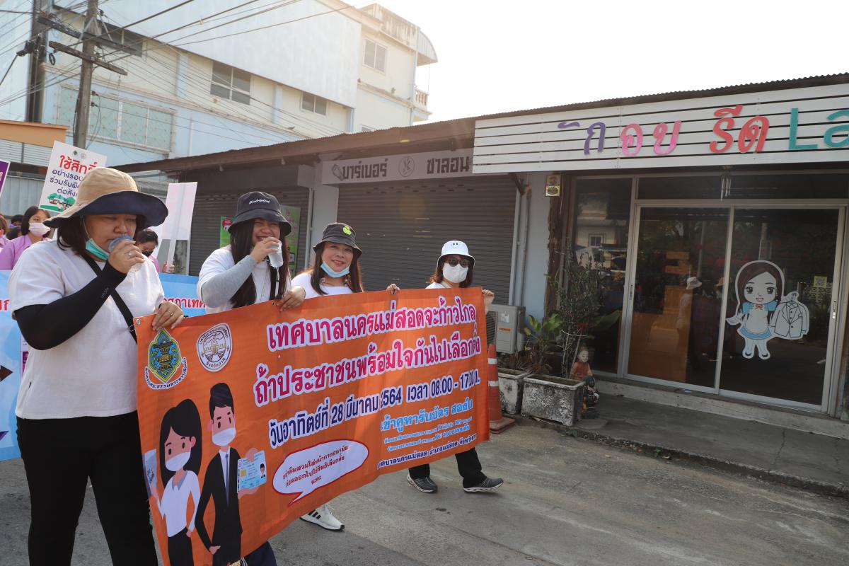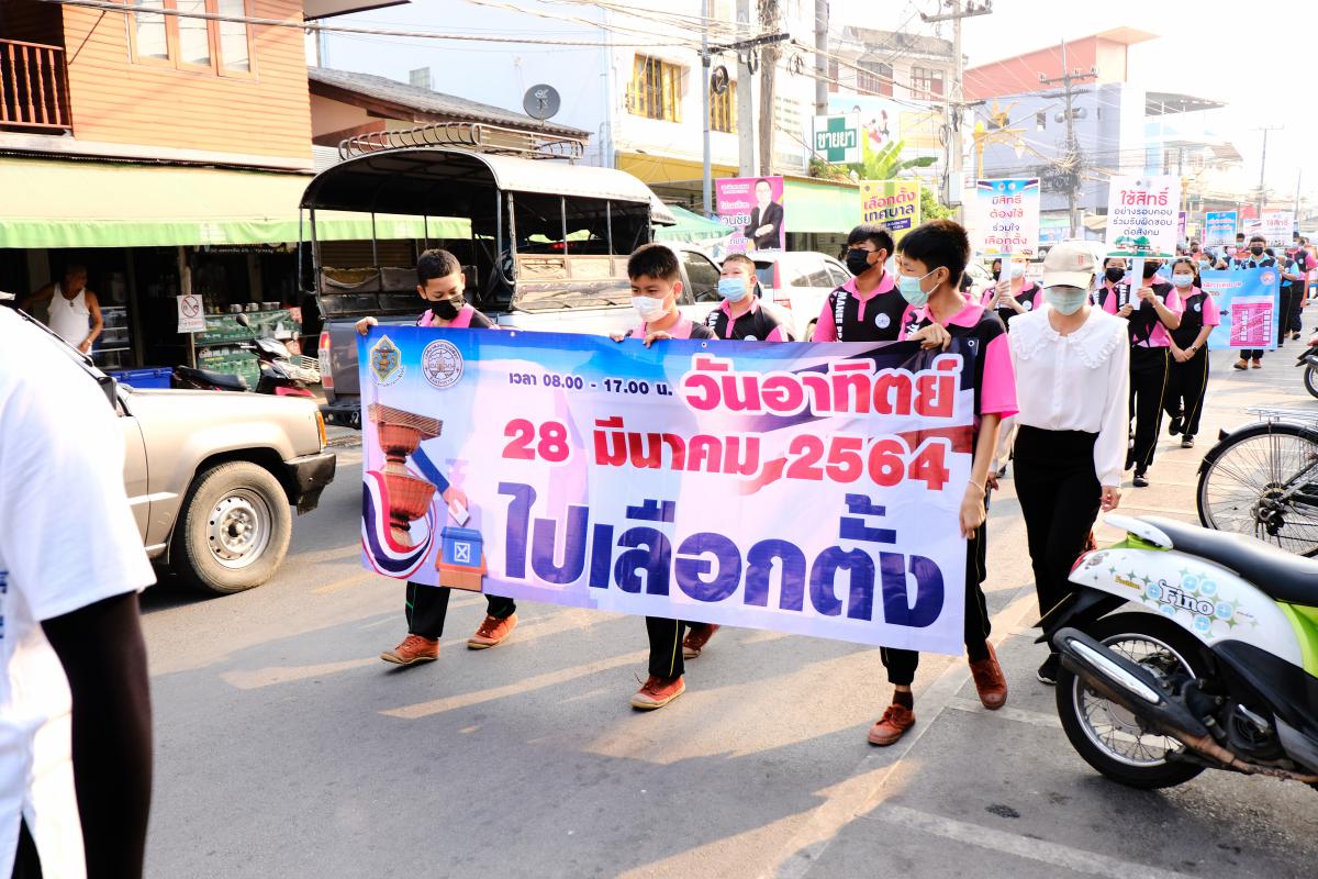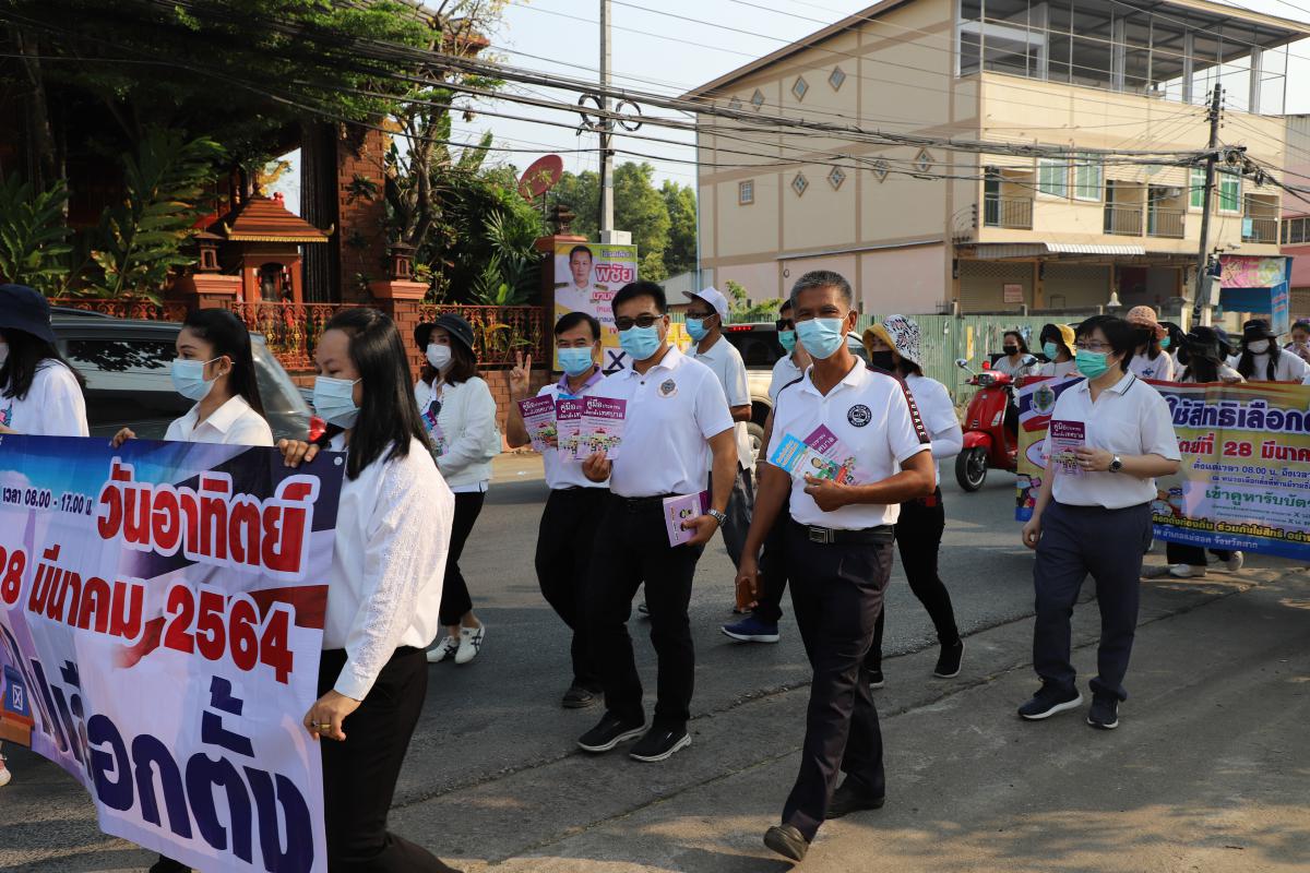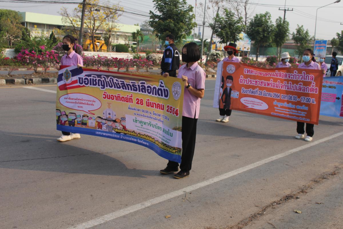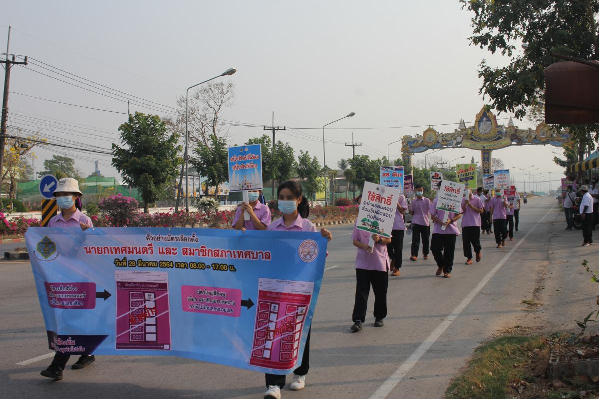 พร้อมทั้งกกต. จ.ตาก ข้าราชการ/พนักงานเทศบาลนครแม่สอด คณะครู นักเรียน ภายในสังกัดเทศบาลนครแม่สอด และนักเรียนโรงเรียนในเขตเทศบาลนครแม่สอด ร่วมเดินรณรงค์ประชาสัมพันธ์การเลือกตั้งสมาชิกสภาเทศบาลและนายกเทศมนตรีนครแม่สอด ภายในเขตเทศบาลนครแม่สอด เพื่อสร้างความรู้ ความเข้าใจและการตระหนักรู้ถึงความสำคัญของการเลือกตั้งให้แก่ประชาชนและเชิญชวนให้ประชาชนไปใช้สิทธิเลือกตั้ง ในวันอาทิตย์ที่ 28 มีนาคม 2564 อย่างพร้อมเพรียงกัน