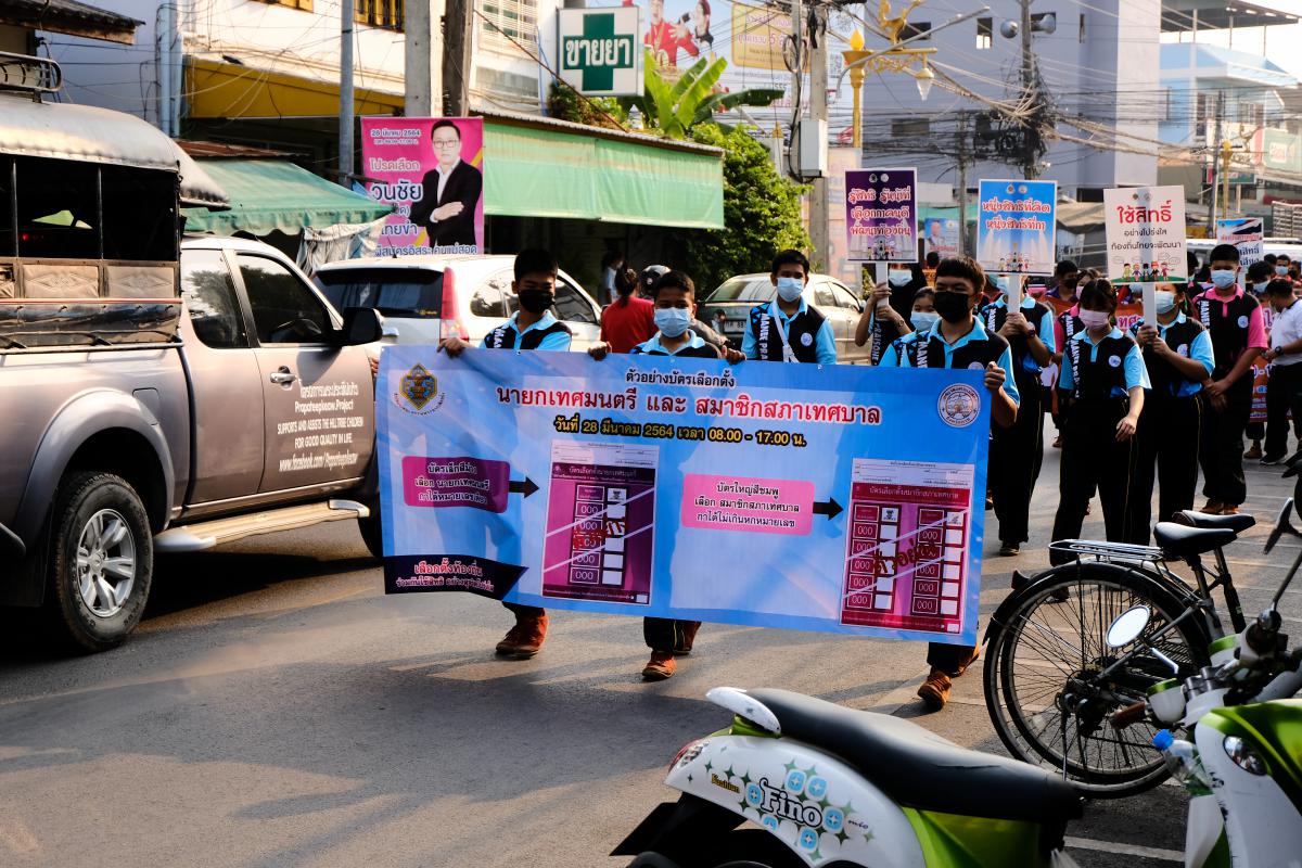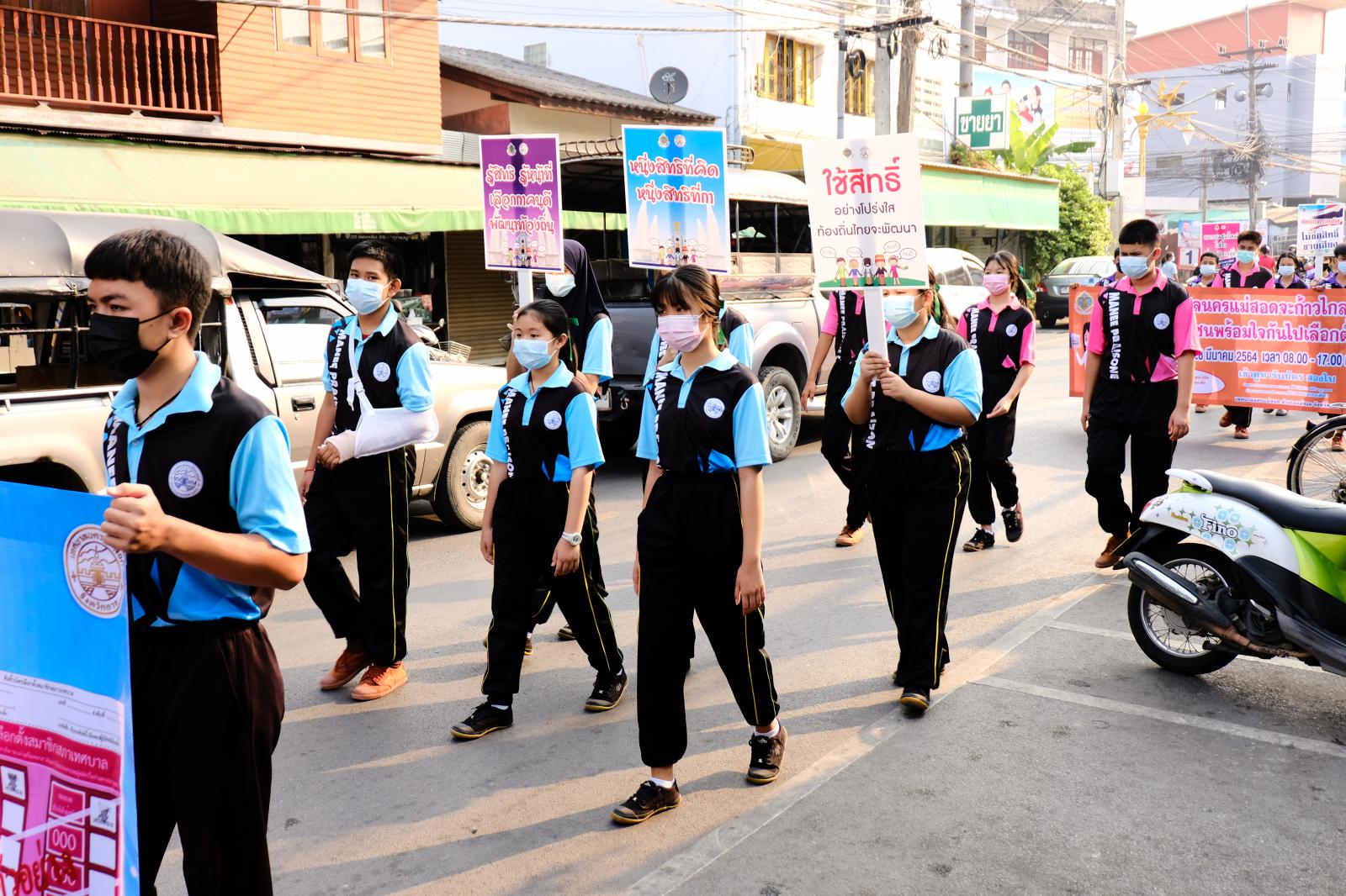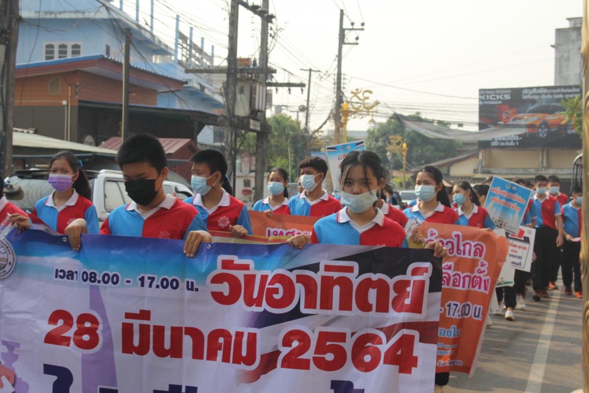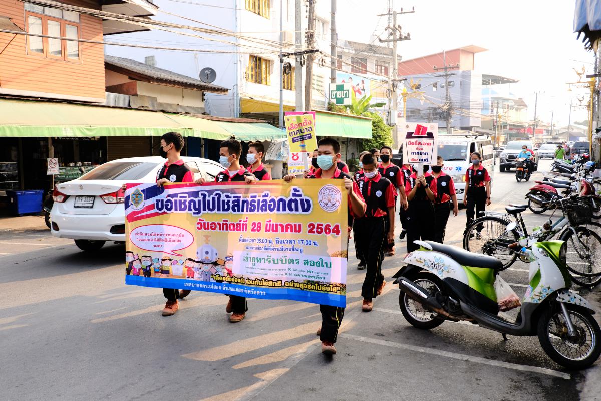 พร้อมทั้งกกต. จ.ตาก ข้าราชการ/พนักงานเทศบาลนครแม่สอด คณะครู นักเรียน ภายในสังกัดเทศบาลนครแม่สอด และนักเรียนโรงเรียนในเขตเทศบาลนครแม่สอด ร่วมเดินรณรงค์ประชาสัมพันธ์การเลือกตั้งสมาชิกสภาเทศบาลและนายกเทศมนตรีนครแม่สอด ภายในเขตเทศบาลนครแม่สอด เพื่อสร้างความรู้ ความเข้าใจและการตระหนักรู้ถึงความสำคัญของการเลือกตั้งให้แก่ประชาชนและเชิญชวนให้ประชาชนไปใช้สิทธิเลือกตั้ง ในวันอาทิตย์ที่ 28 มีนาคม 2564 อย่างพร้อมเพรียงกัน