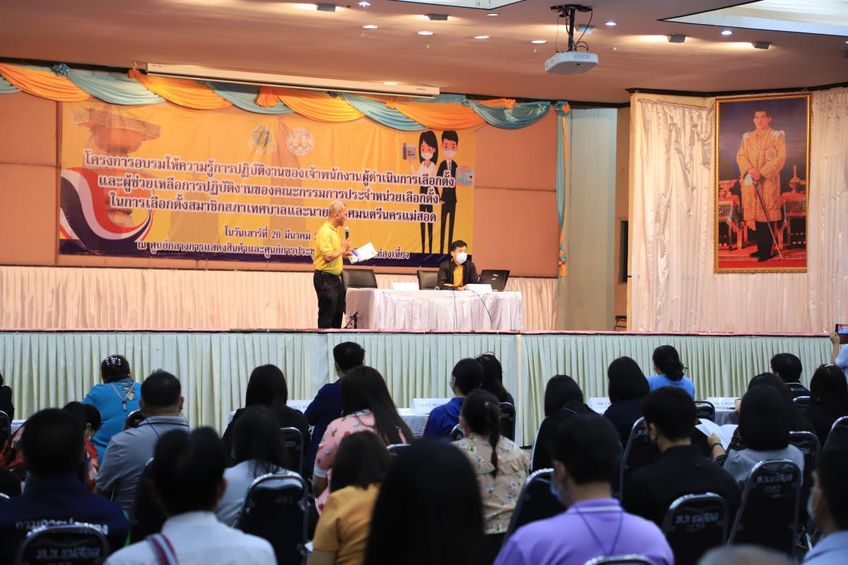นางสาวกัญจน์ณัฏฐ์ หริรักษ์ ผู้อำนวยการกองสวัสดิการสังคม รักษาราชการแทนปลัดเทศบาล ปฏิบัติหน้าที่นายกเทศมนตรีนครแม่สอด พร้อมด้วยหัวหน้าส่วนราชการ คณะกรรมการเลือกตั้งประจำเทศบาลนครแม่สอด และคณะกรรมการประจำหน่วยเลือกตั้ง ทั้ง 4 เขต เข้าร่วมโครงการอบรมให้ความรู้การปฏิบัติงานของเจ้าพนักงานผู้ดำเนินการเลือกตั้งและผู้ช่วยเหลือการปฏิบัติงานของคณะกรรมการประจำหน่วยเลือกตั้งในการเลือกตั้งสมาชิกสภาเทศบาลและนายกเทศมนตรีนครแม่สอด เพื่อให้เข้าใจระเบียบ กฎหมาย แบบพิมพ์ต่างๆ ที่ต้องรู้ที่ต้องใช้ในหน่วยเลือกตั้ง อีกทั้งสาธิตการจัดการหน่วยเลือกตั้ง และการปฏิบัติหน้าที่ของคณะกรรมการเลือกตั้ง ตั้งแต่การเปิดหีบรับลงคะแนนจนถึงการปิดหีบบัตรเลือกตั้งและการนับคะแนน จนถึงการส่งมอบหีบบัตรเลือกตั้ง ให้กับคณะกรรมการรับหีบบัตร ณ สนามกีฬาสมเด็จพระนเรศวร ซึ่งจัดเป็นกองอำนวยการเลือกตั้งเทศบาลนครแม่สอด โดยมีนายชูชาติ สุขสงวน ผู้อำนวยการการเลือกตั้งประจำจังหวัดตาก พร้อมคณะ เป็นวิทยากรบรรยาย