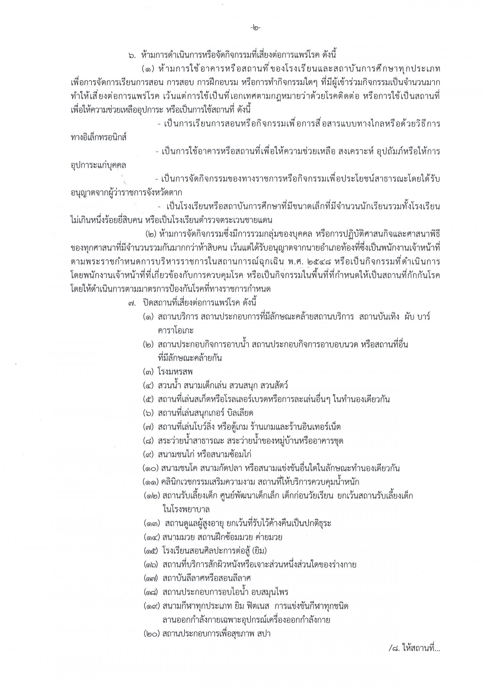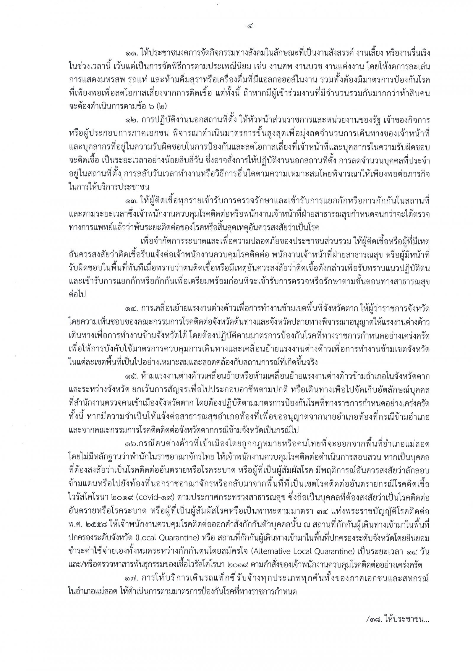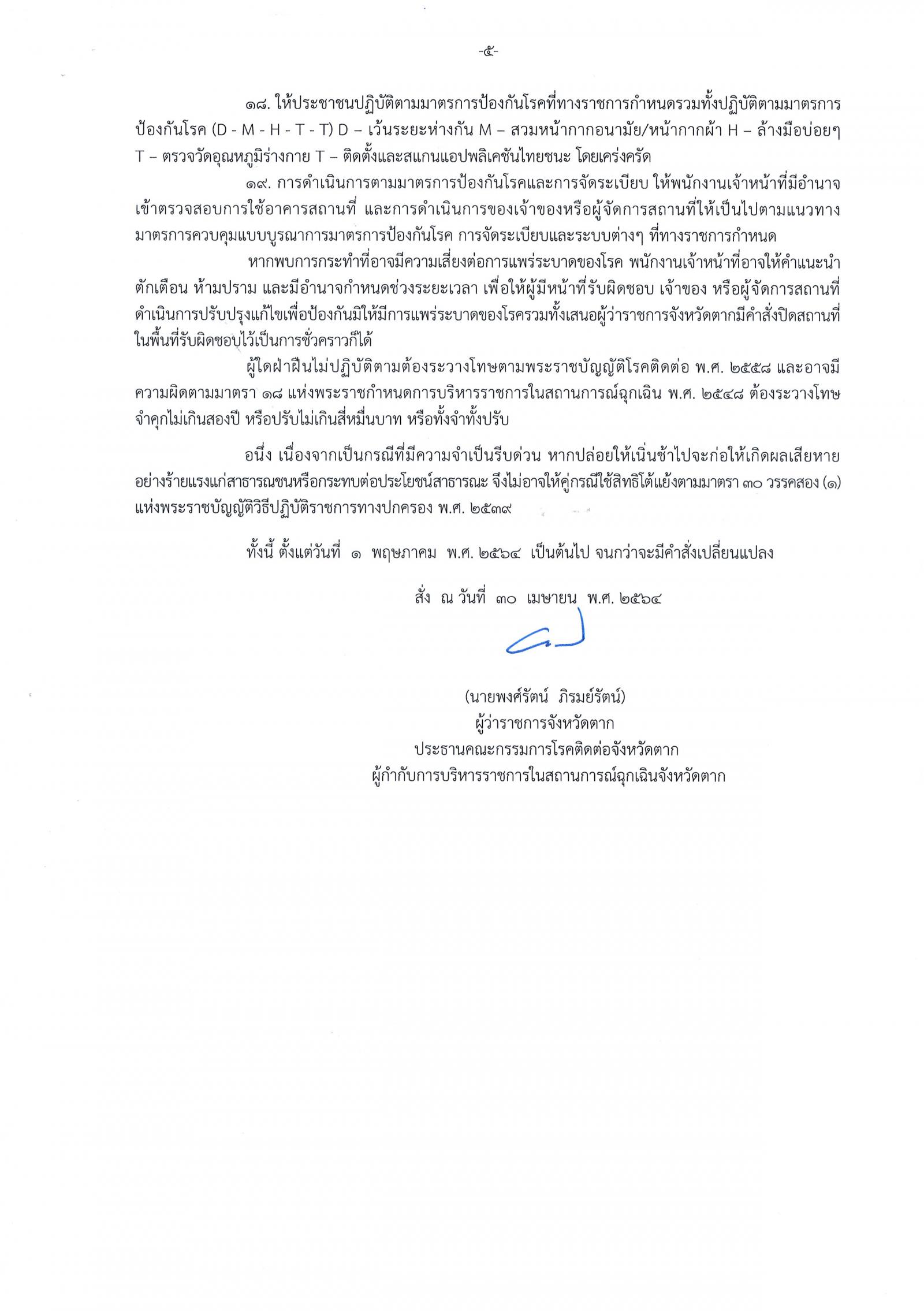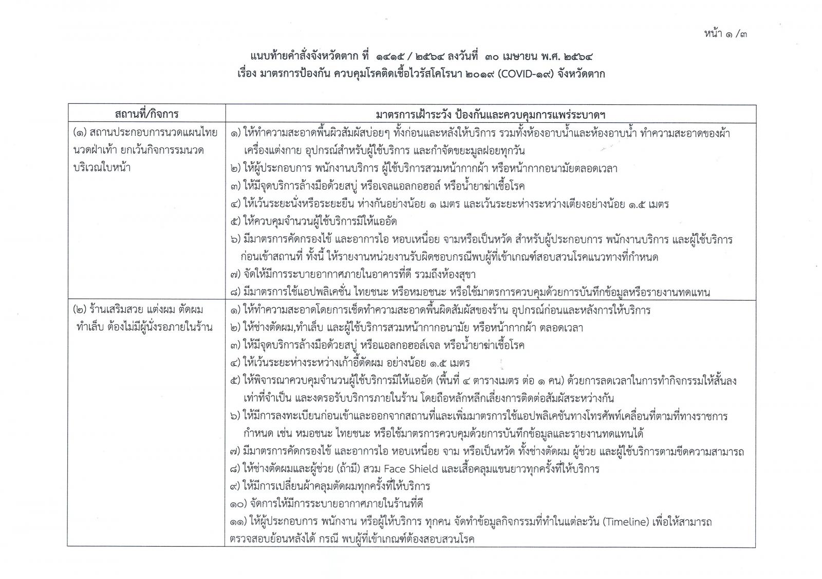 คำสั่งจังหวัดตาก ที่ 2415/2564 เรื่อง มาตรการป้องกัน ควบคุมโรคติดเชื้อไวรัสโคโรนา 2019 (โควิด-19) จังหวัดตาก