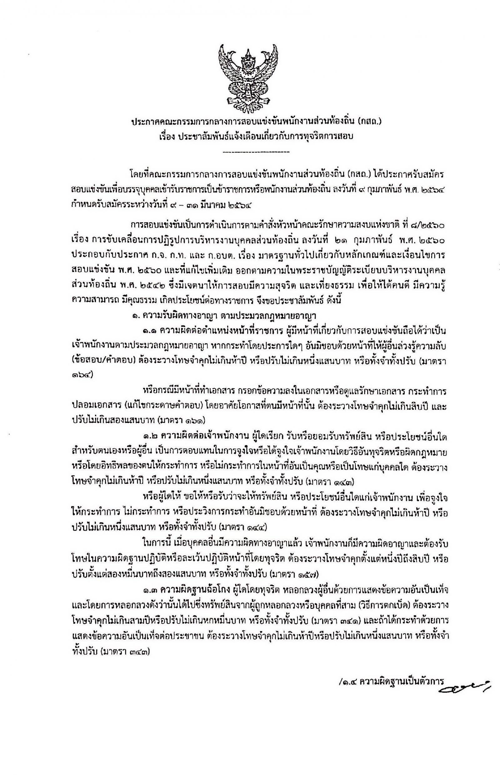 ประกาศคณะกรรมการกลางการสอบแข่งขันพนักงานส่วนท้องถิ่น (กสถ.) เรื่อง ประชาสัมพันธ์แจ้งเตือนเกี่ยวกับการทุจริตสอบ