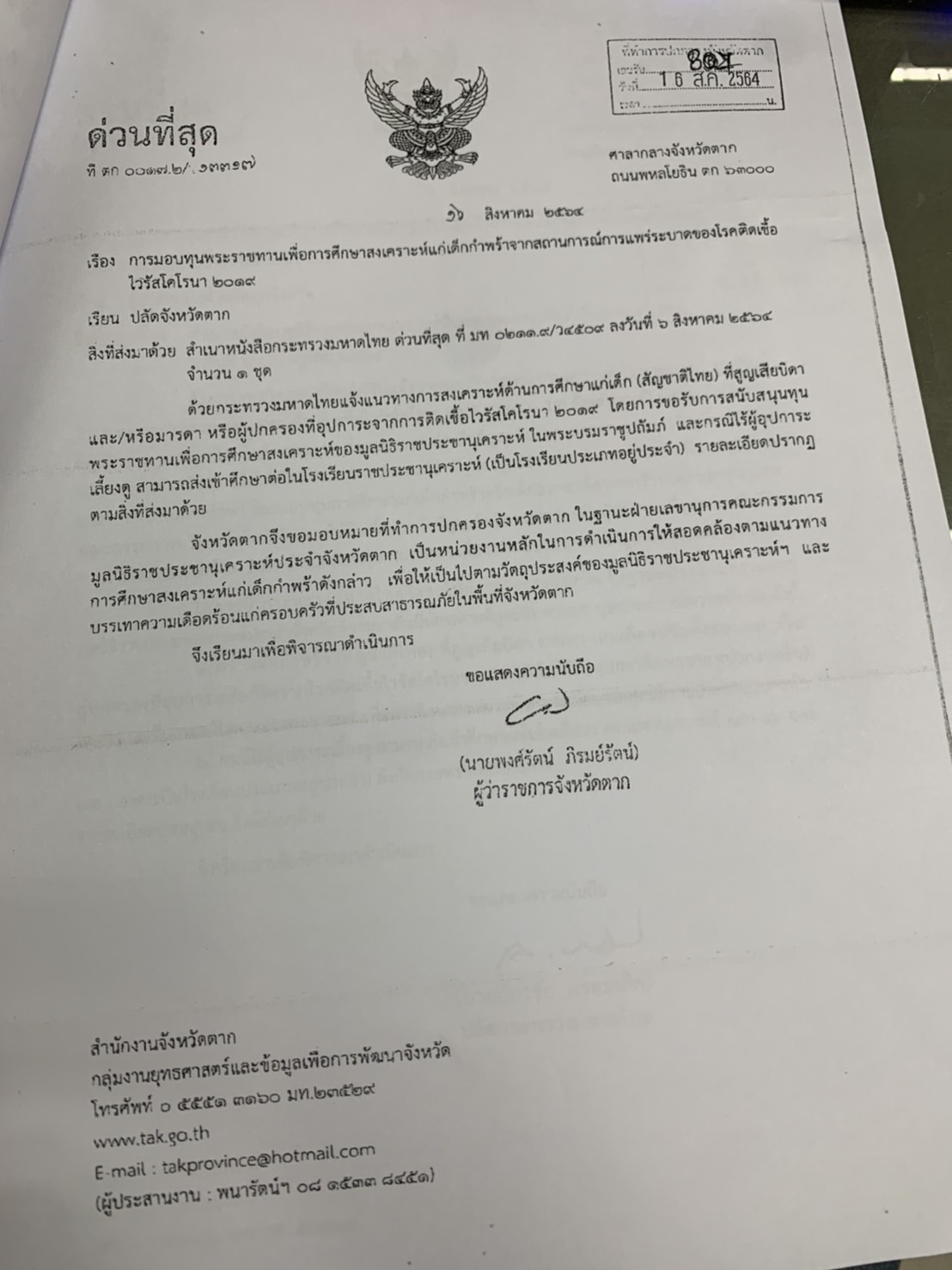 สนใจติดต่อ ที่ทำการปกครองจังหวัดตาก โทร. 055-512298