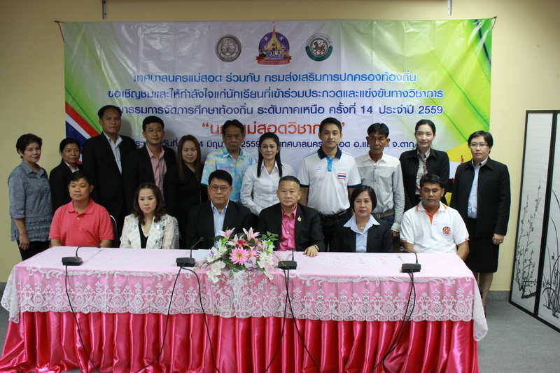 ดร.เทอดเกียรติ ชินสรนันท์ นายกเทศมนตรีนครแม่สอด นำคณะผู้บริหารกองการศึกษานายภิรมย์ ทองคุ้ม คณะผู้บริหารสถานศึกษาโรงเรียนในสังกัดเทศบาลนครแม่สอด ประกอบด้วยนางไพเราะ กาญจนสิงห์ ผู้อำนวยการสถานศึกษาโรงเรียนเทศบาลเฉลิมพระเกียรติ สมเด็จพระเทพรัตนราชสุดาฯ สยามบรมราชกุมารี นายกิจจา แตงรอด ผู้อำนวยการสถานศึกษาโรงเรียนเทศบาลวัดมณีไพรสณฑ์ นายไพรัตน์ อินริราย ผู้อำนวยการสถานศึกษาโรงเรียนเทศบาลวัดบุญญาวาส นายชัยรัตน์ ยศบรรเทิง ผู้อำนวยการสถานศึกษาโรงเรียนเทศบาลวัดชุมพลคีรี และนายปรีชา ฝ่ายคำตา รักษาการฯผู้อำนวยการสถานศึกษา ผู้อำนวยการสถานศึกษาโรงเรียนเทศบาลวัดดอนแก้ว และรองผู้อำนวยการฯ ร่วมจัดแถลงข่าวมหกรรมการจัดการศึกษาท้องถิ่น ระดับภาคเหนือ ครั้งที่ 14 วันอาทิตย์ที่ 22 พฤษภาคม 2559 เวลา 13.00 น ณ ห้องประชุมโกเมน เทศบาลนครแม่สอด ดร.เทอดเกียรติ นายกเทศมนตรีนครแม่สอด กล่าวว่ากรมการปกครองท้องถิ่นและองค์กรปกครองส่วนท้องถิ่นทุกแห่งได้ร่วมจัดงานมหกรรมการศึกษาท้องถิ่นทุกปี เป็นการเผยแพร่ผลงานวิชาการ และการประกวดแข่งขันทักษะวิชาการขององค์กรปกครองส่วนท้องถิ่นในเขตพื้นที่ภาคเหนือ ทั้งการศึกษานอกระบบและในระบบและการศึกษาตามอัธยาศัยตั้งแต่การจัดการศึกษาศูนย์พัฒนาเด็กเล็ก ระดับปฐมวัย การศึกษาภาคบังคับ การศึกษาระดับมัธยมศึกษาตอนปลายประเภทสามัญศึกษาและประเภทอาชีวศึกษาตลอดจนภูมิปัญญาท้องถิ่นให้ประชาชนโดยทั่วไปได้รับรู้และรับทราบว่ากิจกรรมการจัดงานแข่งขันทักษะวิชาการ ระดับภาคเหนือ (มหกรรมการจัดการศึกษาขององค์กรปกครองส่วนท้องถิ่น ระดับภาค) ประจำปี 2559 มีการจัดแสดงผลงานการจัดการศึกษาและการเสวนาทางวิชาการเพื่อแลกเปลี่ยนเรียนรู้และประสบการณ์ระหว่างกัน อีกทั้งเป็นการกระตุ้นให้องค์กรปกครองส่วนท้องถิ่นได้เห็นความสำคัญของการศึกษา และเร่งพัฒนาศักยภาพ ขีดความสามารถในการจัดการศึกษาของตนเองให้มีคุณภาพ สำหรับการจัดกิจกรรมมหกรรมการจัดการศึกษาขององค์กรปกครองส่วนท้องถิ่น ระดับภาค มีวัตถุประสงค์เพื่อการประชาสัมพันธ์เผยแพร่ผลงานการจัดการศึกษาและภูมิปัญญาท้องถิ่น เป็นการกระตุ้นให้บุคลาการทางการศึกษา ครู และผู้เกี่ยวข้อง เกิดการพัฒนาศักยภาพในการจัดการศึกษาให้มีคุณภาพได้มาตรฐาน และเป็นเวทีแลกเปลี่ยนเรียนรู้ระหว่างองค์กรส่วนท้องถิ่น ในกิจกรรมแข่งขันทักษะวิชาการ ระดับภาคเหนือ (มหกรรมการจัดการศึกษาขององค์กรปกครองส่วนท้องถิ่น ระดับภาค)ประจำปี 2559 จัดขึ้นในวันที่ 22-24 มิถุนายน 2559 ณ เทศบา