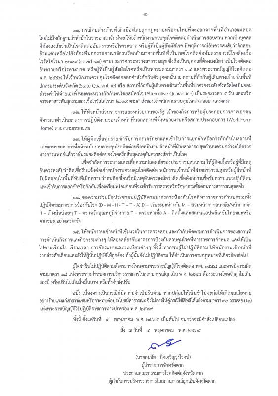 คำสั่งจังหวัดตาก ที่ 1295/2565 เรื่อง มาตรการป้องกันควบคุมโรคติดเชื้อไวรัสโคโรนา 2019 (โควิด-19) จังหวัดตาก