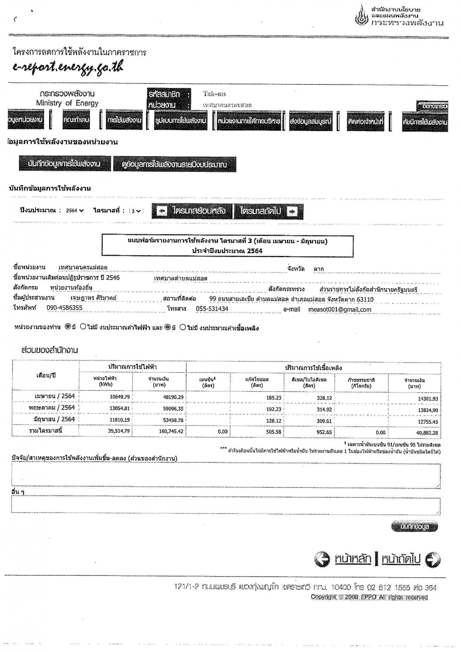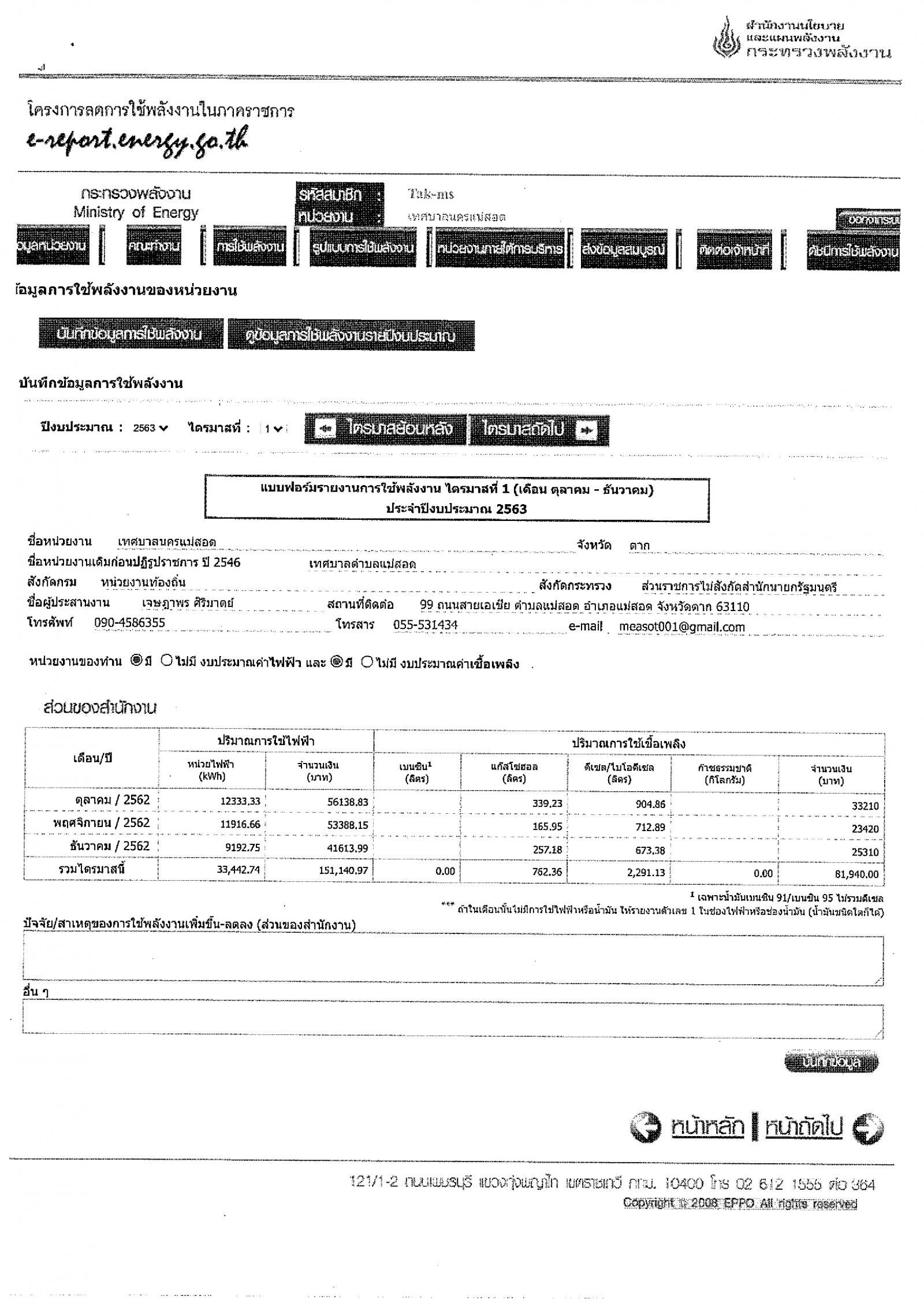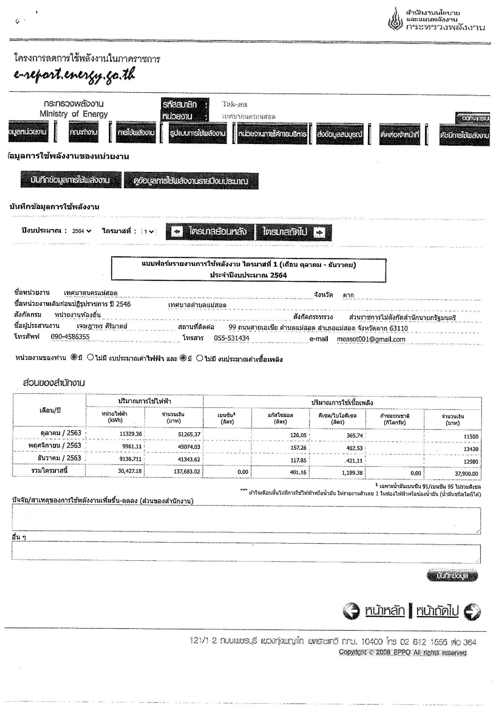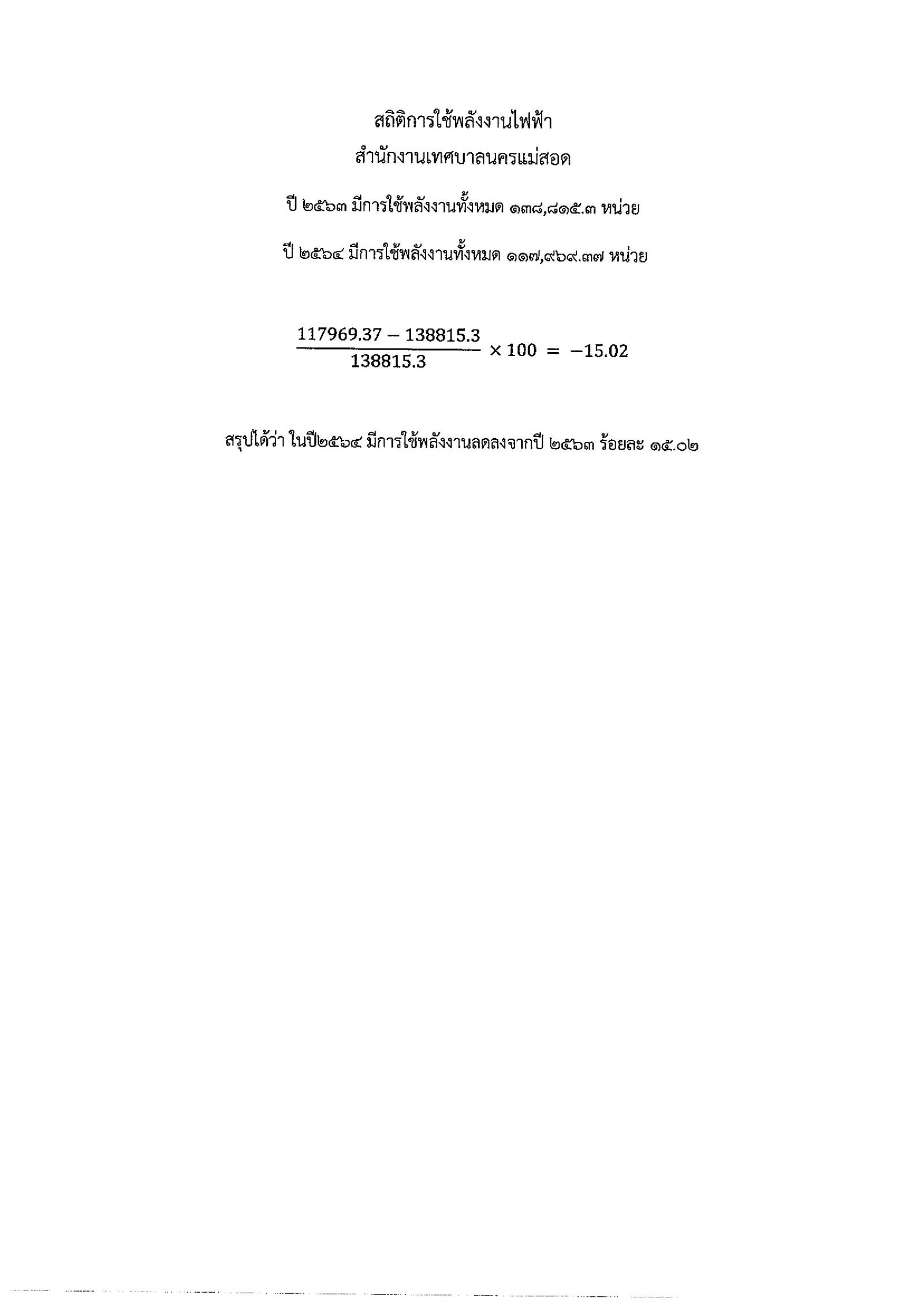 สถิติการใช้พลักงานไฟฟ้าสำนักงานเทศบาลนครแม่สอด