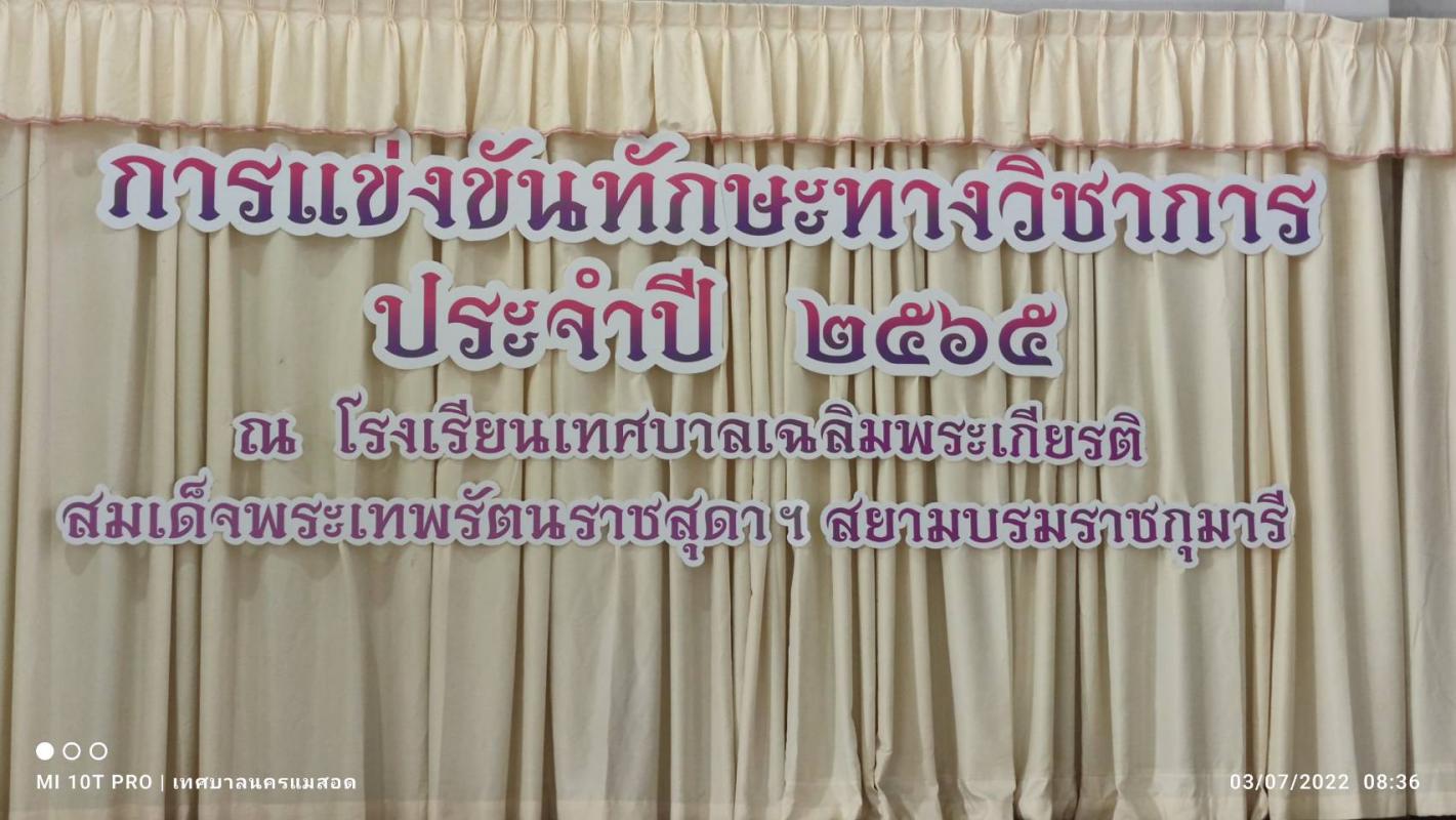 เมื่อวันที่ 3 กรกฎาคม 2565 ณ หอประชุมโรงเรียนเทศบาลเฉลิมพระเกียรติสมเด็จพระเทพรัตนราชสุดาฯ สยามบรมราชกุมารี สังกัดเทศบาลนครแม่สอด ตำบลแม่ปะ อำเภอแม่สอด ว่าที่ร้อยตรีประเสริฐ ปวงละคร นายกเทศมนตรีนครแม่สอด เป็นประธานพิธีเปิดการแข่งขันทักษะทางวิชาการโรงเรียนท้องถิ่นสังกัด เทศบาลนครแม่สอด