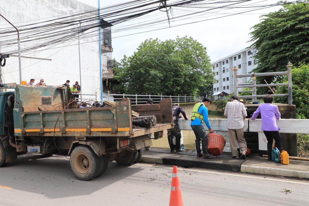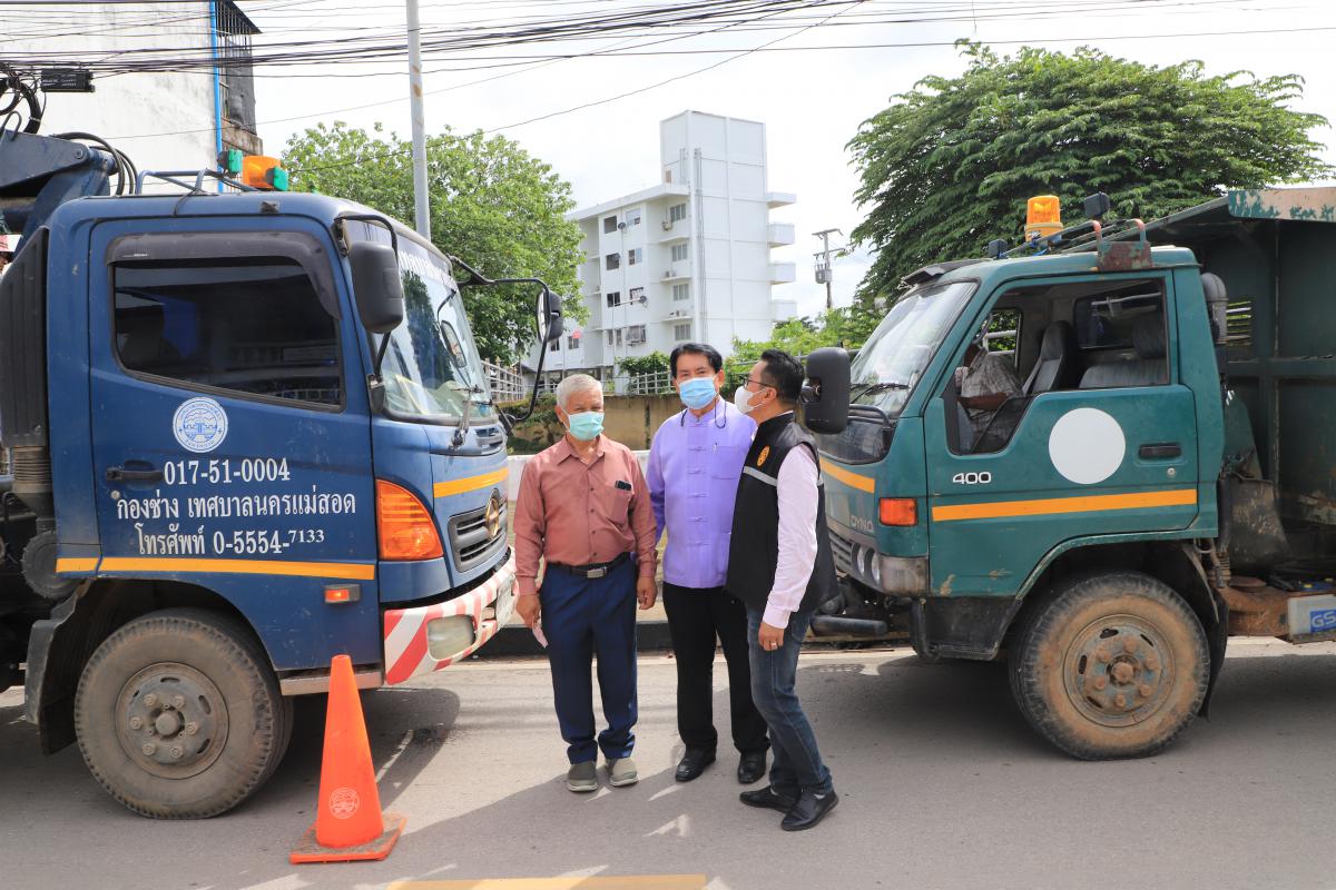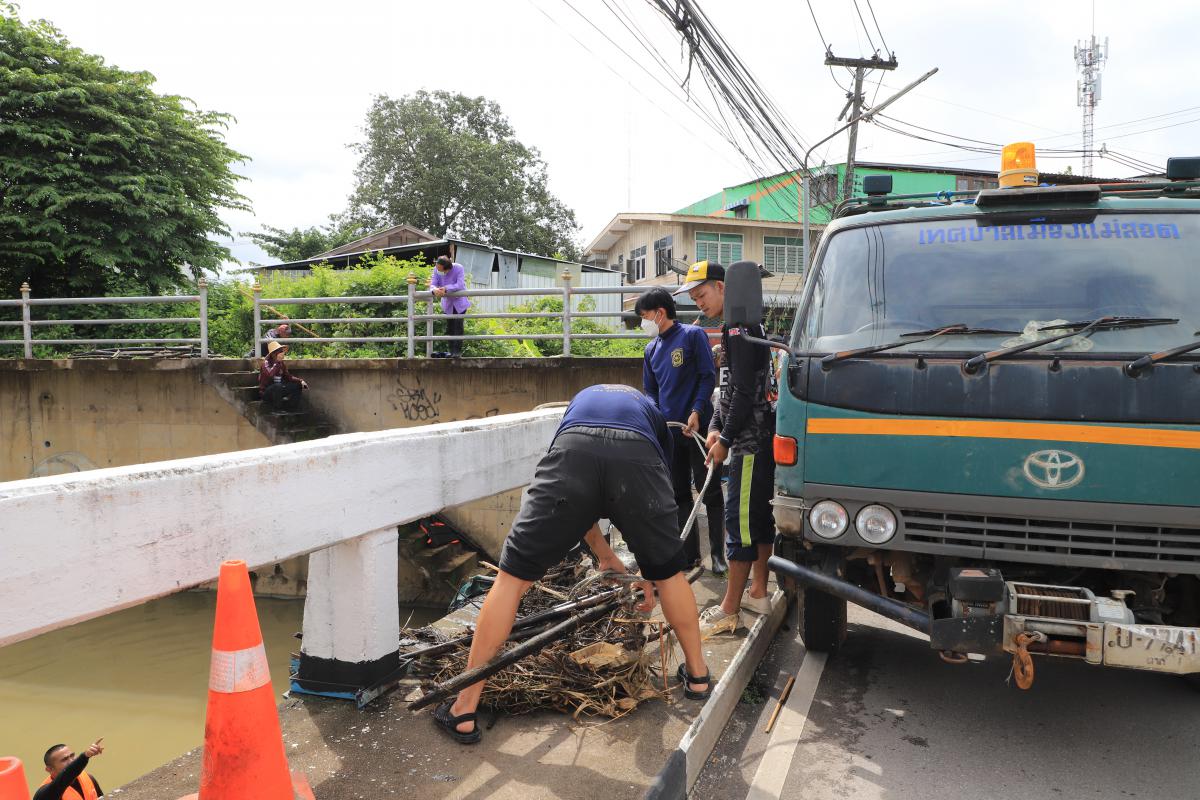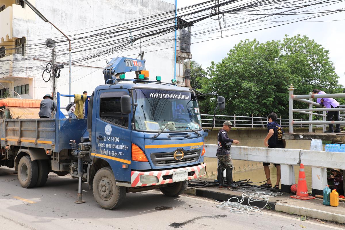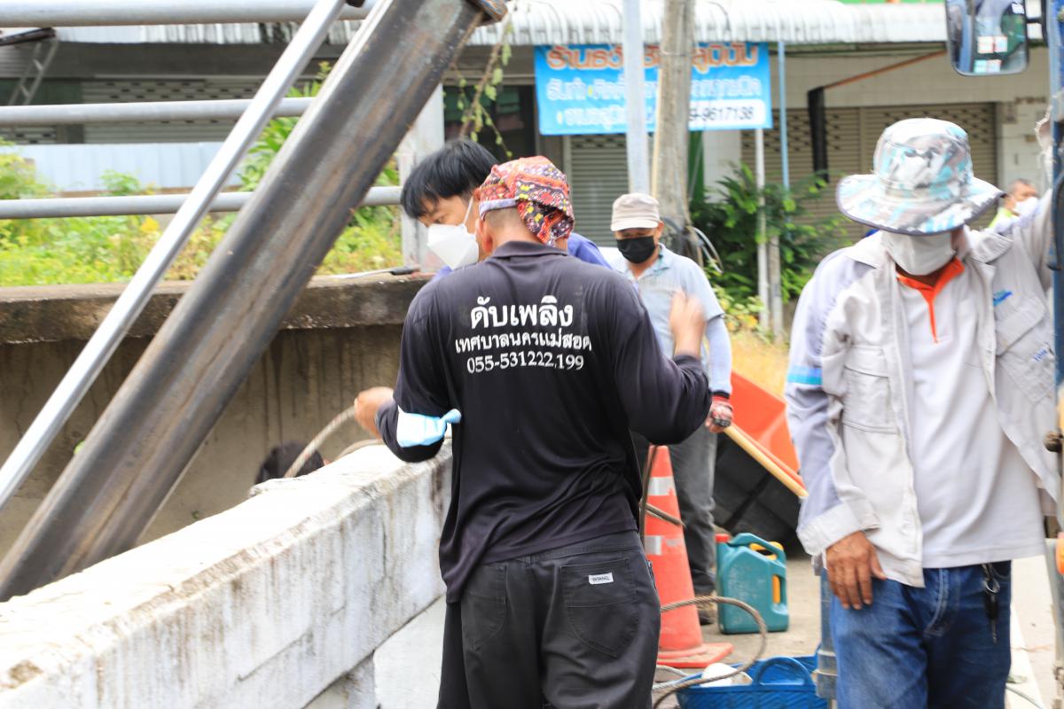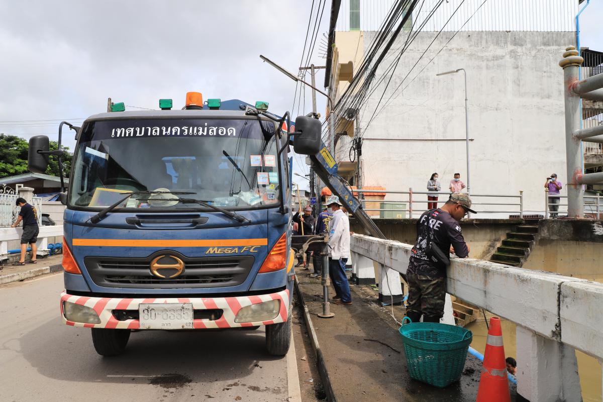 ลงพื้นที่ดำเนินการจัดเก็บขยะบริเวณใต้สะพานข้ามลำห้วยแม่สอด และลำรางระบายน้ำ (ใกล้ร้านจงมั่นคง) เนื่องจากมีกิ่งไม้ ใบหญ้า เศษวัสดุ เศษขยะ ขวางกั้นทางระบายน้ำเป็นจำนวนมาก เป็นเหตุให้ตื้นเขินทำให้น้ำไม่สามารถไหลได้สะดวกและรวดเร็ว ก่อให้เกิดปัญหาน้ำท่วมได้ในอนาคต ซึ่งทางผู้บริหารเทศบาลได้เห็นความสำคัญอย่างยิ่งในการแก้ไขปัญหาน้ำท่วม ในเขตเทศบาลนครแม่สอด เป็นนโยบายหลักในการแก้ไขปัญหาในช่วงฤดูฝนที่มีฝนตกตลอดทุกวัน