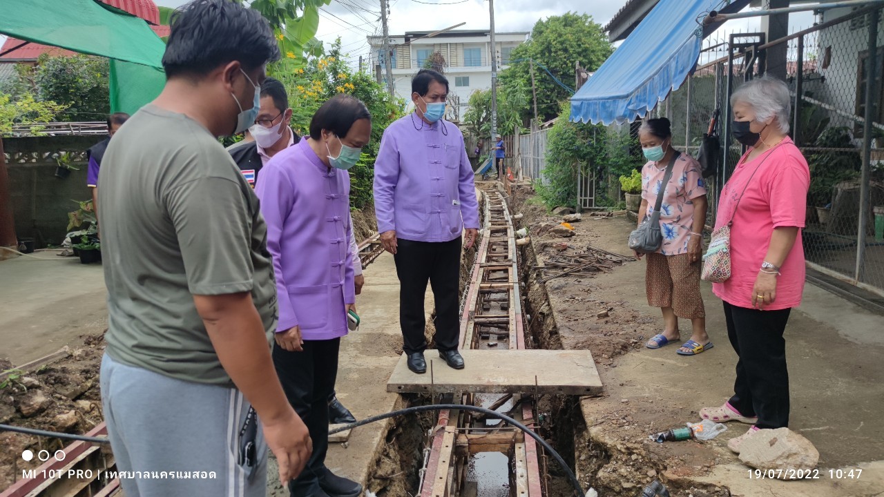ว่าที่ร้อยตรีประเสริฐ ปวงละคร นายกเทศมนตรีนครแม่สอด พร้อมด้วยคณะผู้บริหาร สมาชิกสภาเทศบาล ลงพื้นที่ติดตามงานก่อสร้างถนนและท่อระบายน้ำในซอยตรงข้ามร้านห้องเขียวพิมพ์งาน ถนนชิดวนา ชุมชนมณีไพรสณฑ์