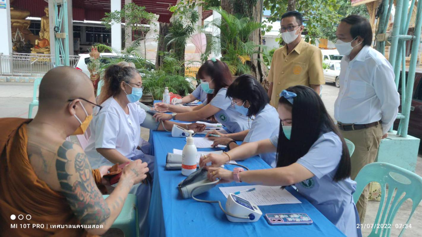 ว่าที่ร้อยตรีประเสริฐ ปวงละคร นายกเทศมนตรีนครแม่สอด นำเจ้าหน้าที่คลินิกชุมชนอบอุ่น กองสาธารณสุขและสิ่งแวดล้อม เทศบาลนครแม่สอด ตรวจคัดกรองสุขภาพ ความดัน ไขมัน เบาหวาน ให้กับพระภิกษุ สามเณร และคณะศรัทธาพุทธศาสนิกชน ที่วัดมณีไพรสณฑ์ เขตเทศบาลนครแม่สอด